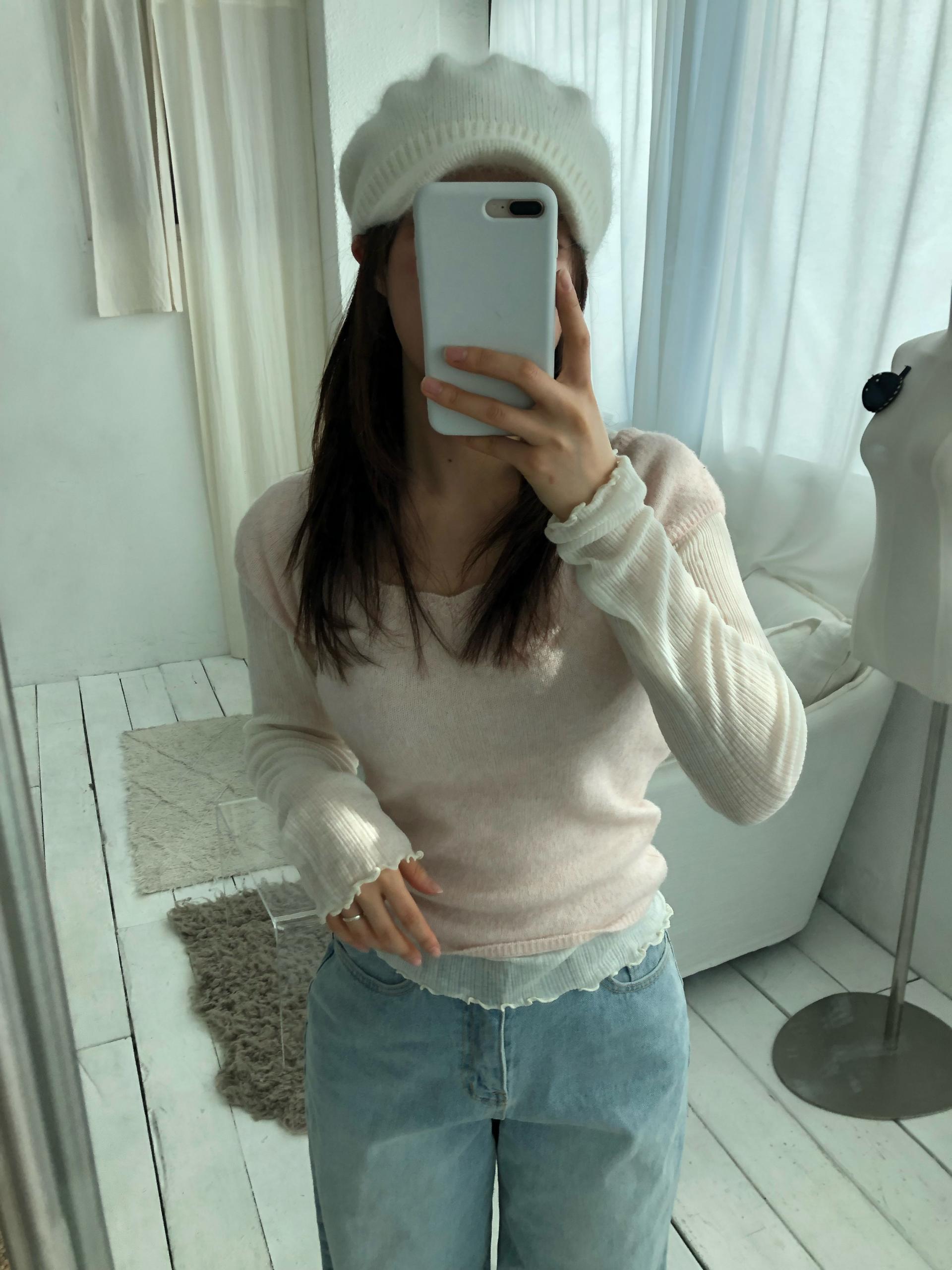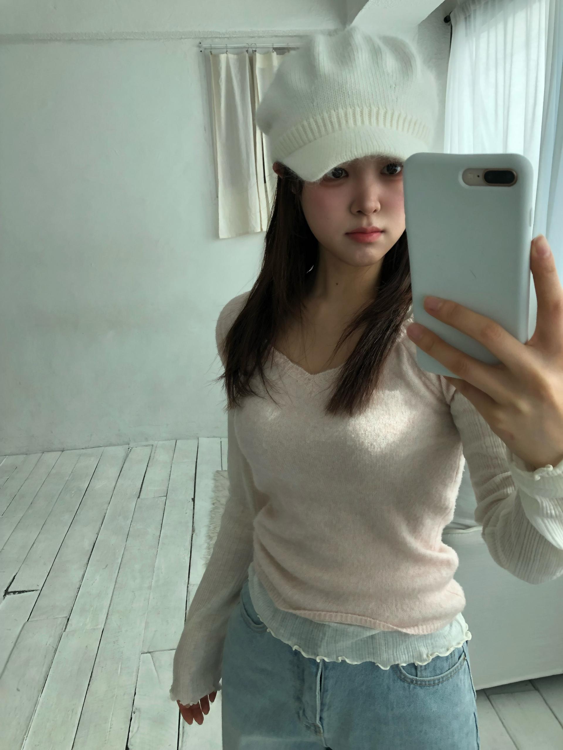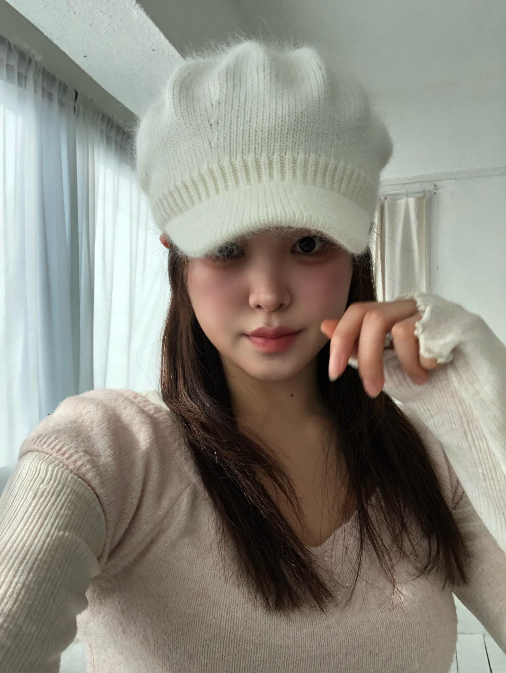 스노우 앙고라 니트 베레모SALE