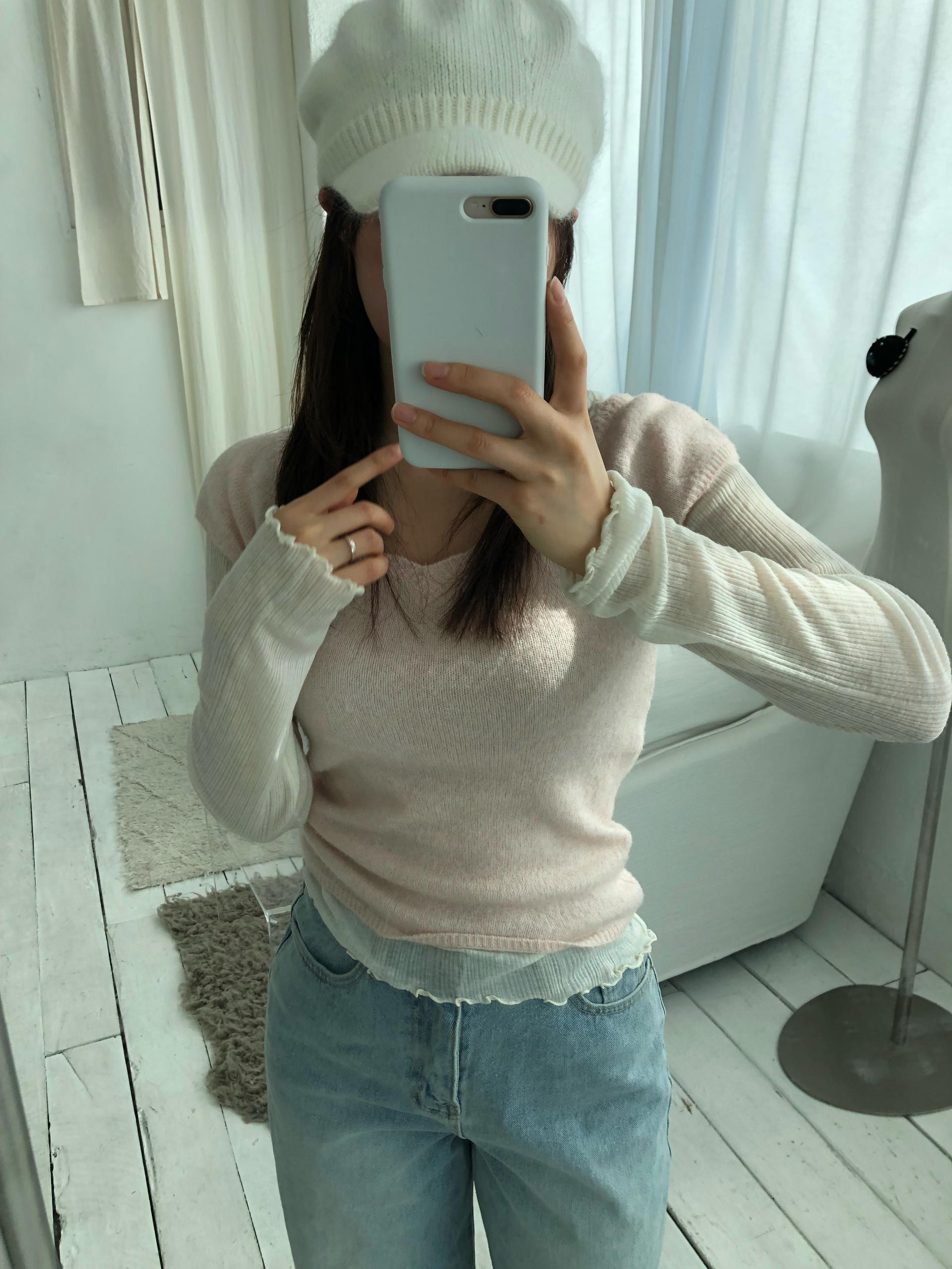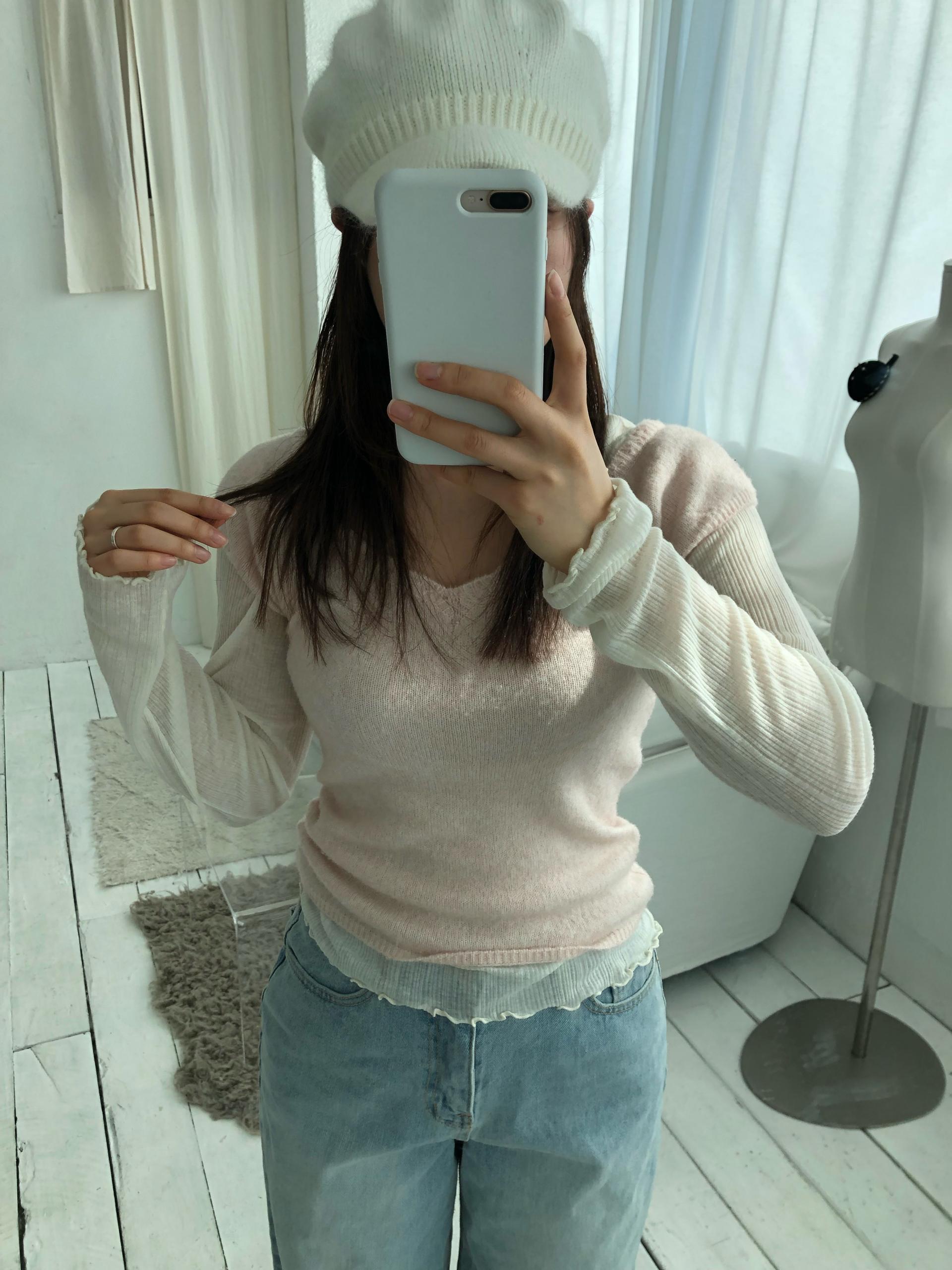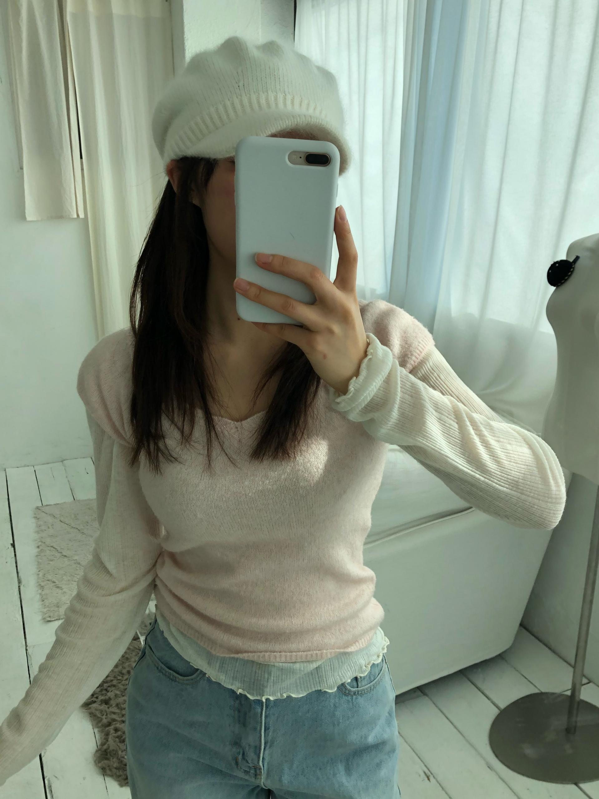 - 웨니 울 반팔 니트 (핑크)