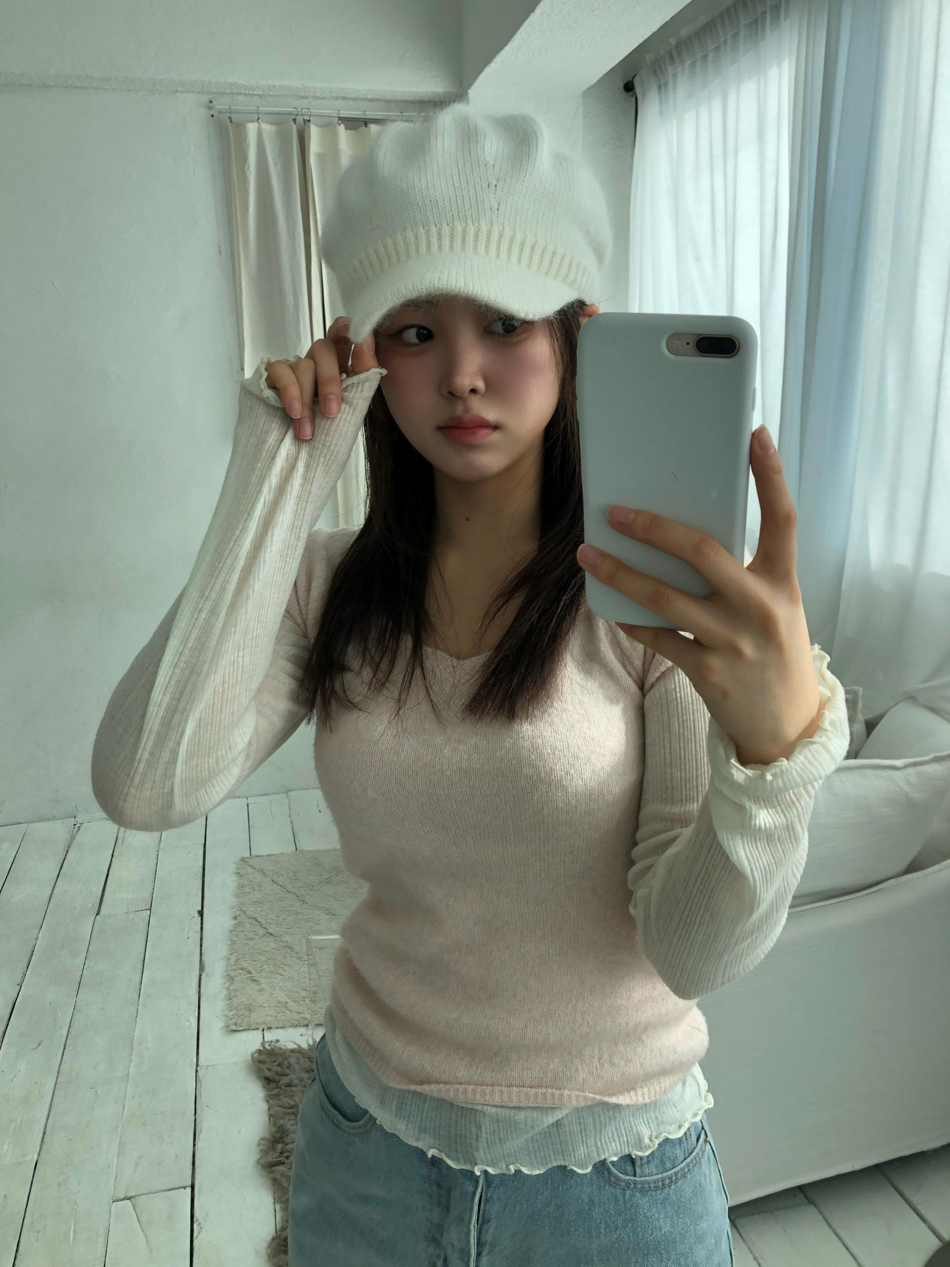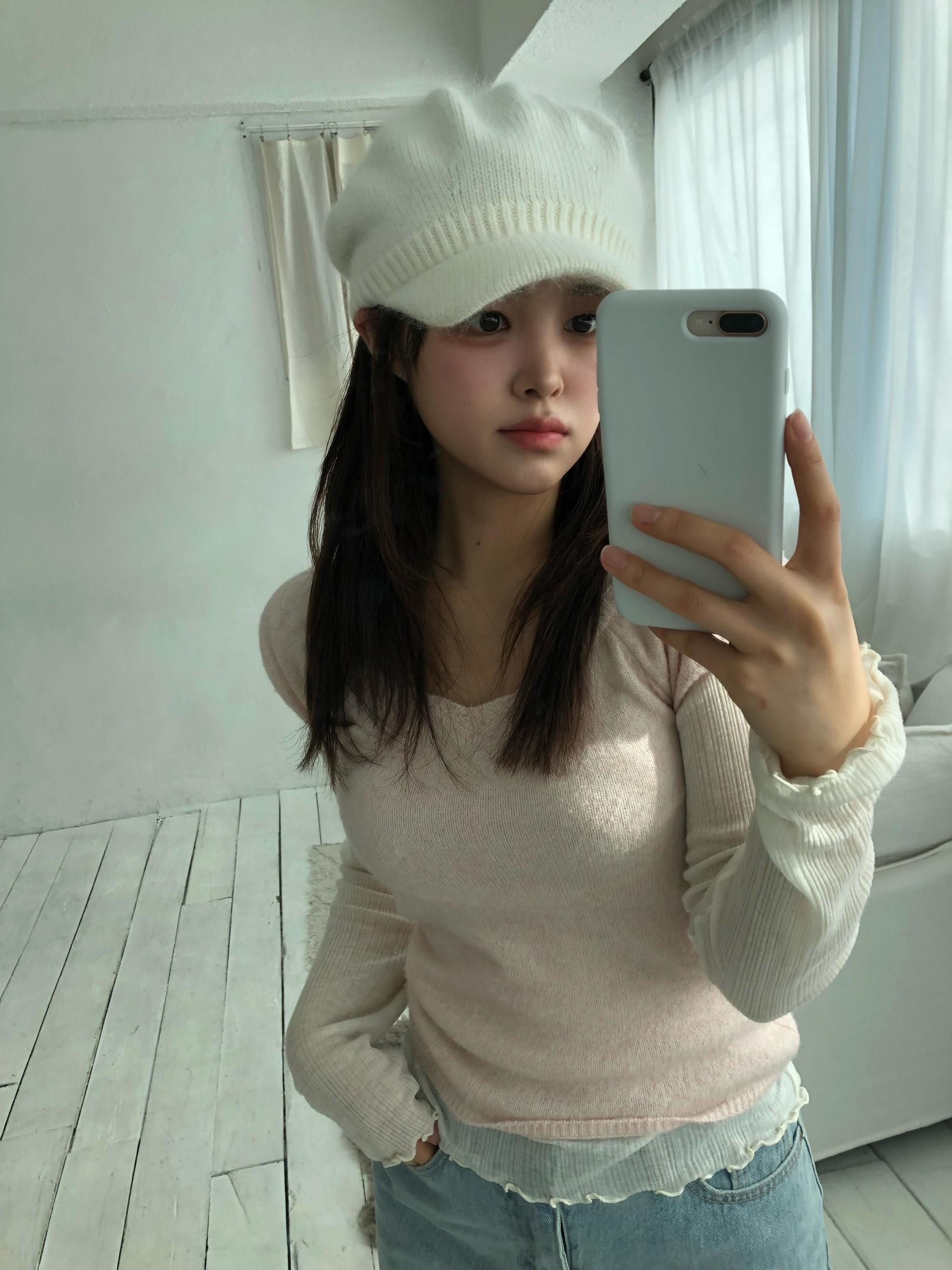 스노우 앙고라 니트 베레모는