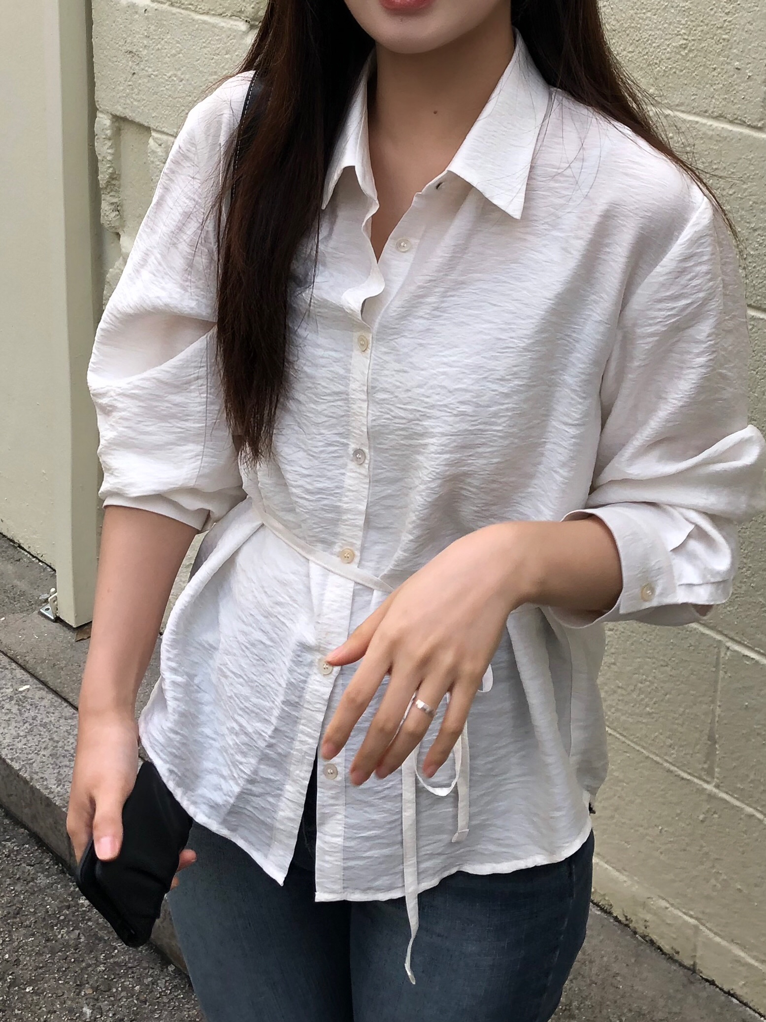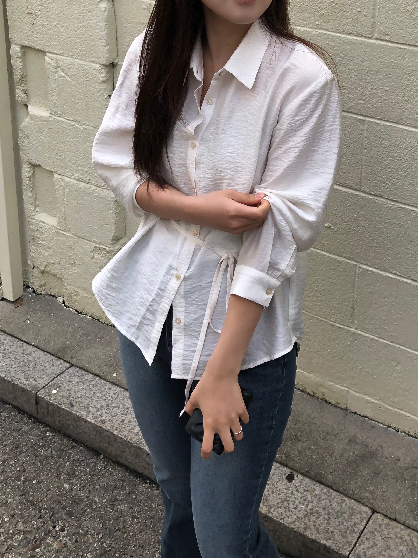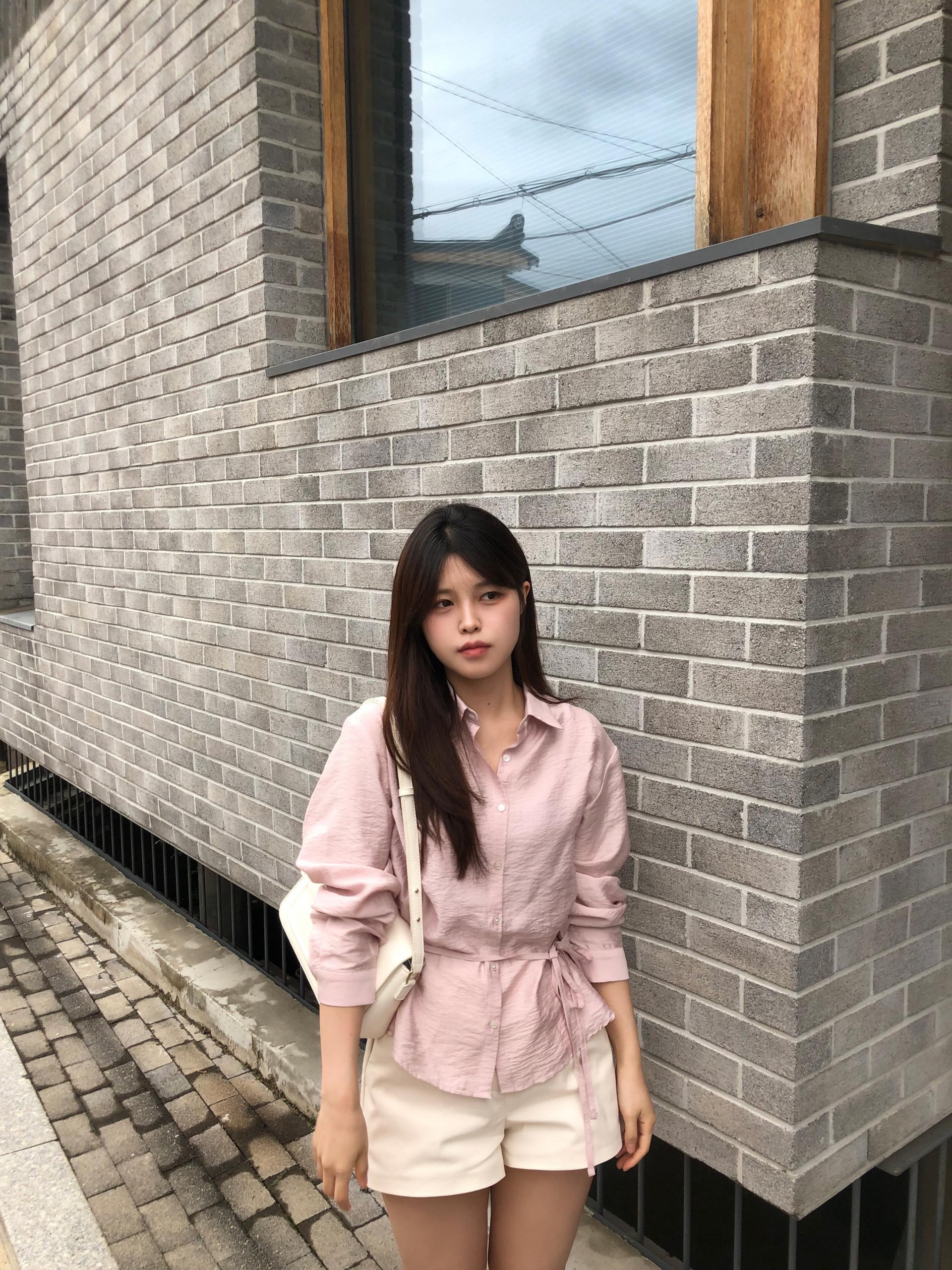 오니 실키 끈 셔츠는
