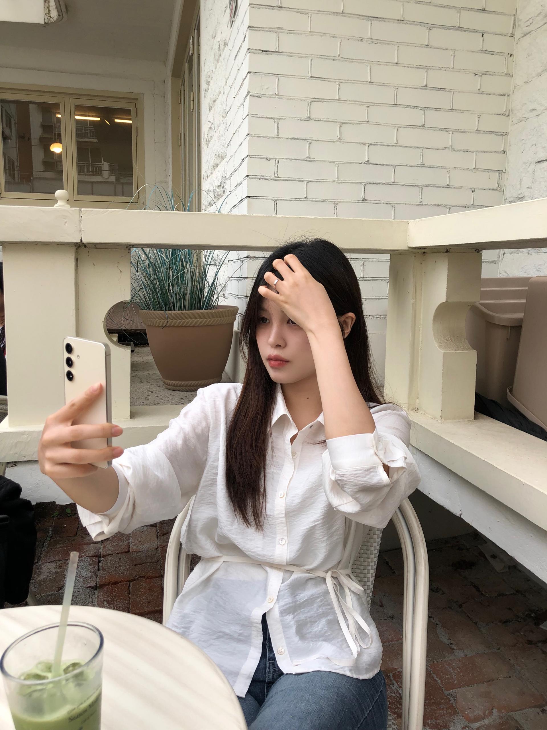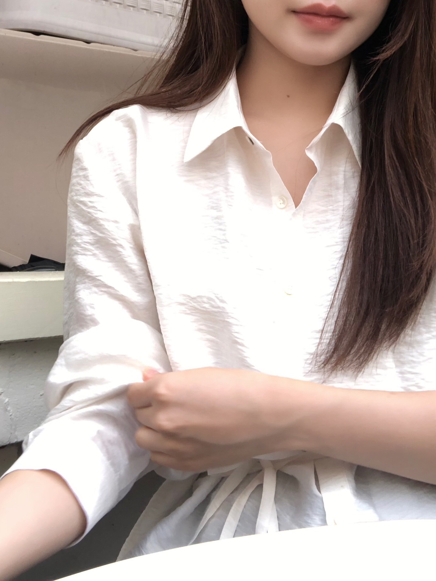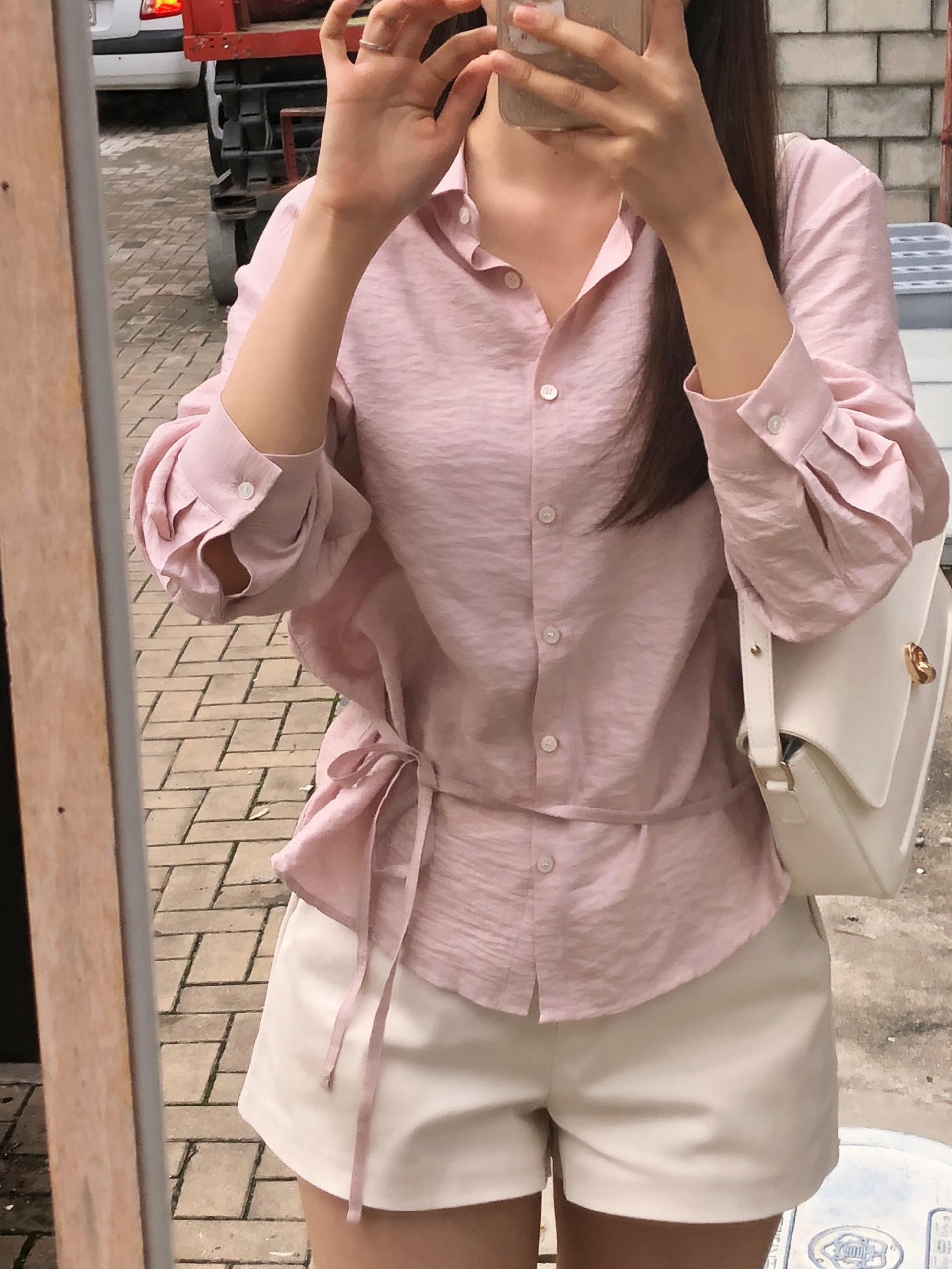 오니 실키 끈 셔츠는
