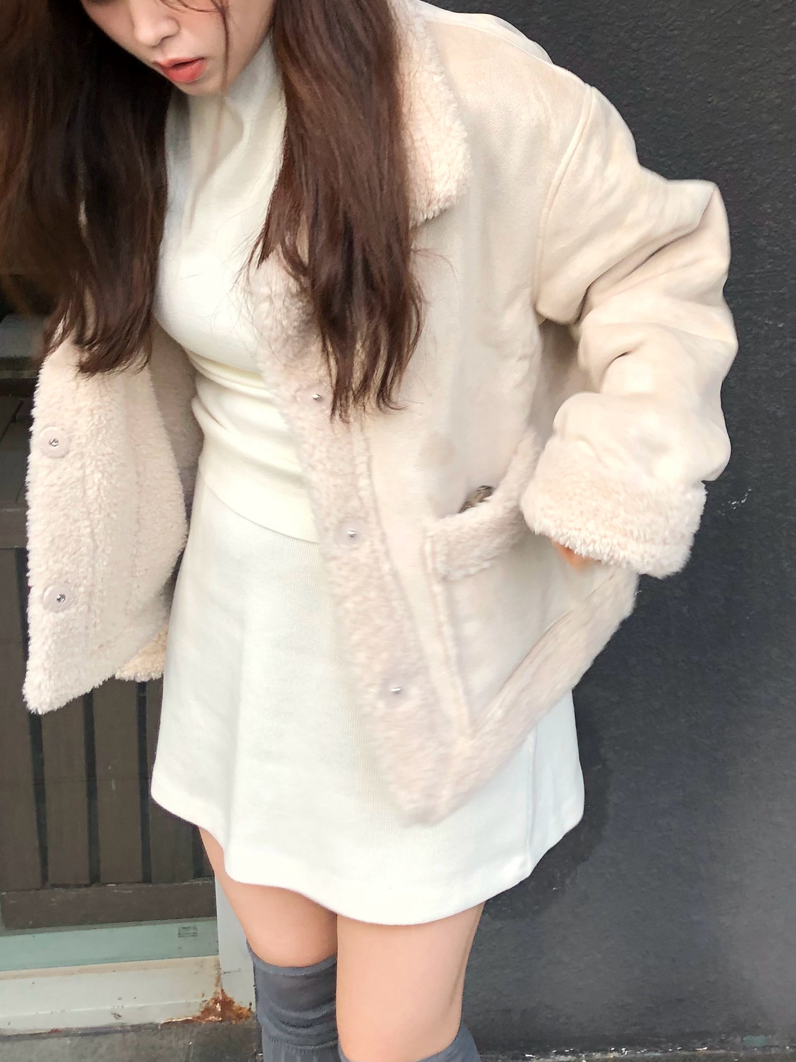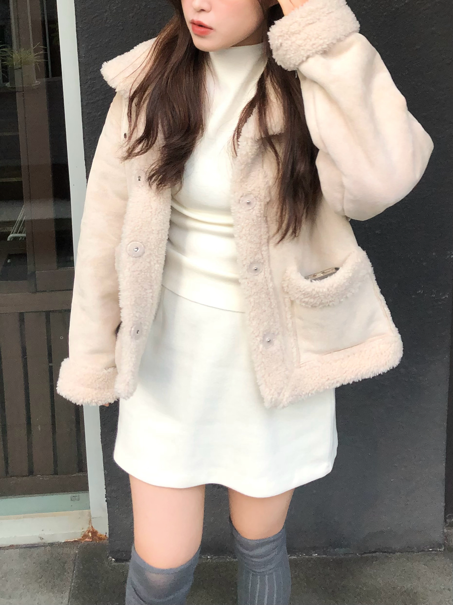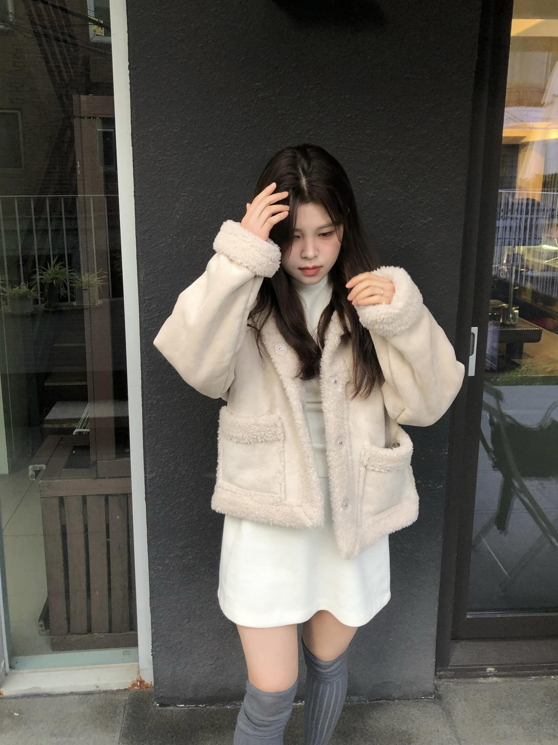 - 보르노 무스탕 점퍼 (아이보리)