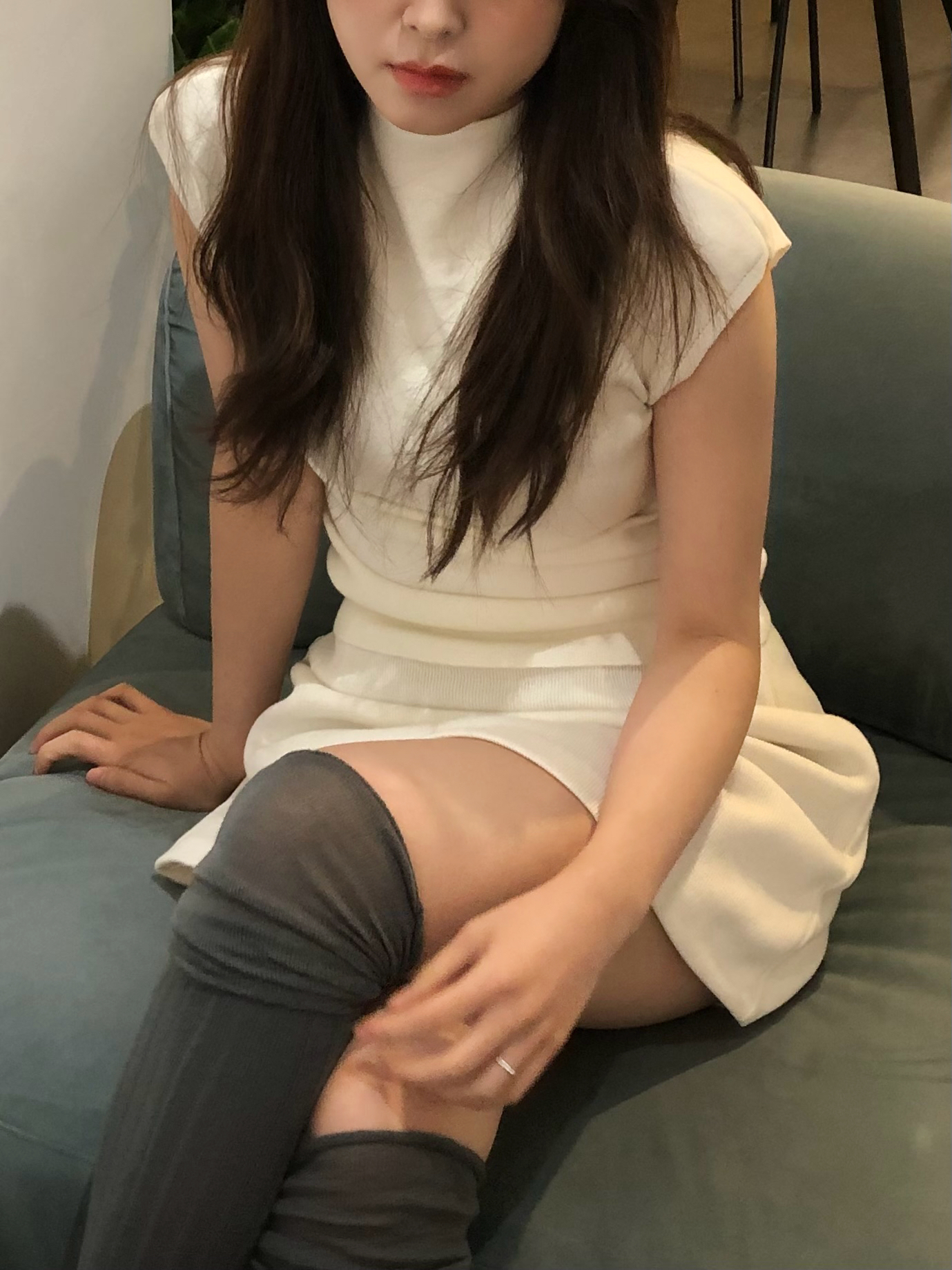 은은한 반폴라 디자인이 목선을 자연스럽게 감싸주어