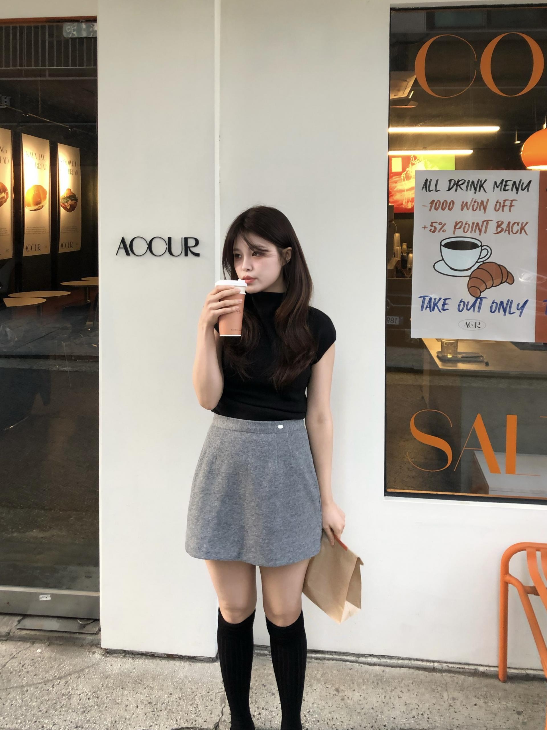 버니 니트 스커트는 미니 기장의 니트 울 소재로