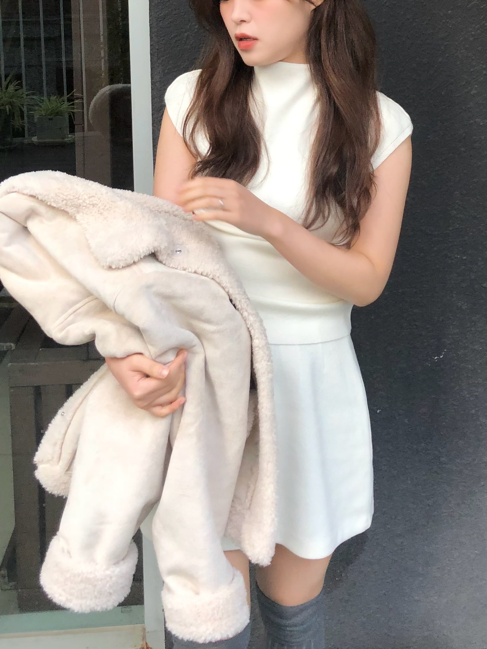 카라 라인에 풍성한 퍼 디테일이 더해져