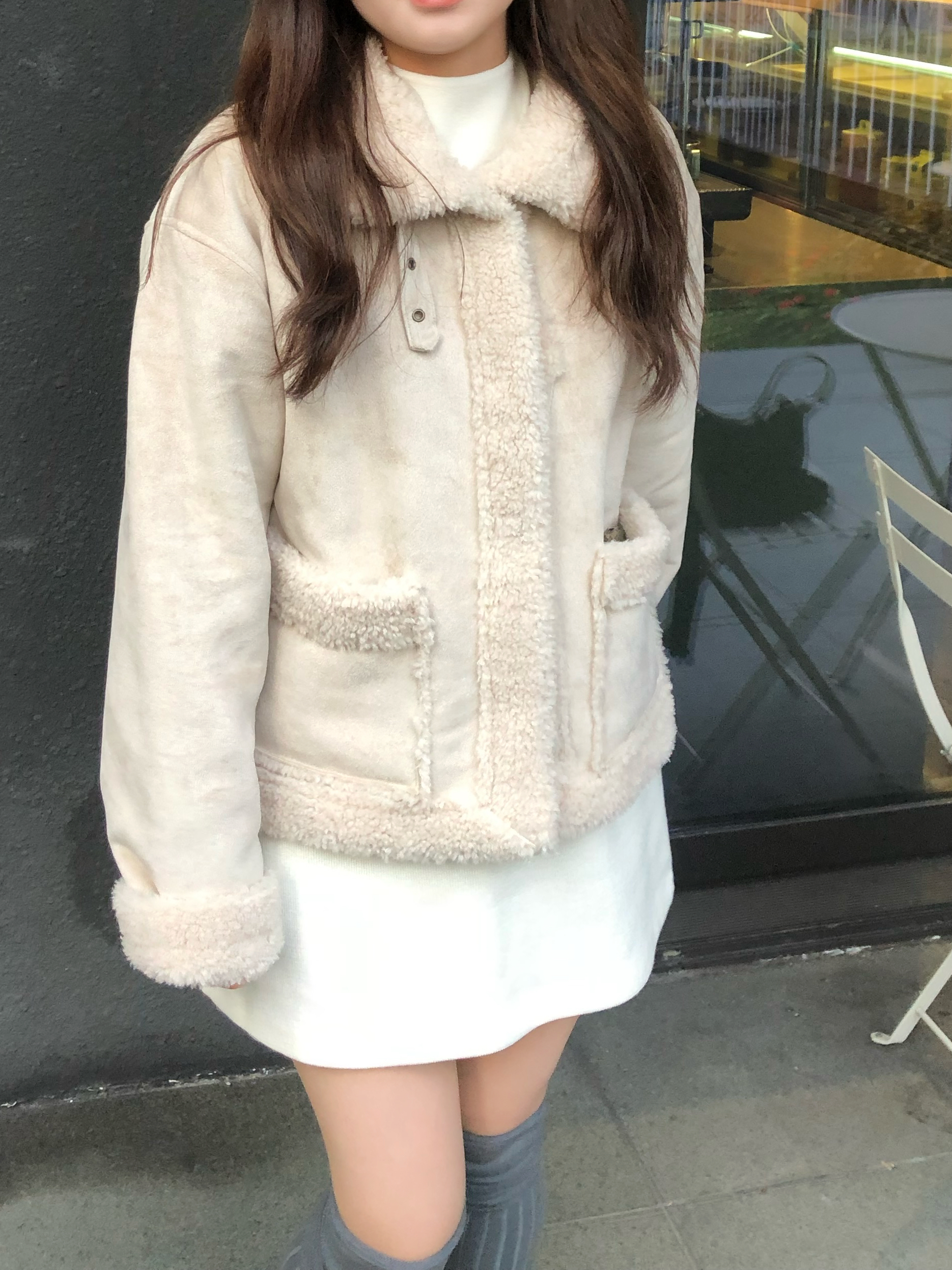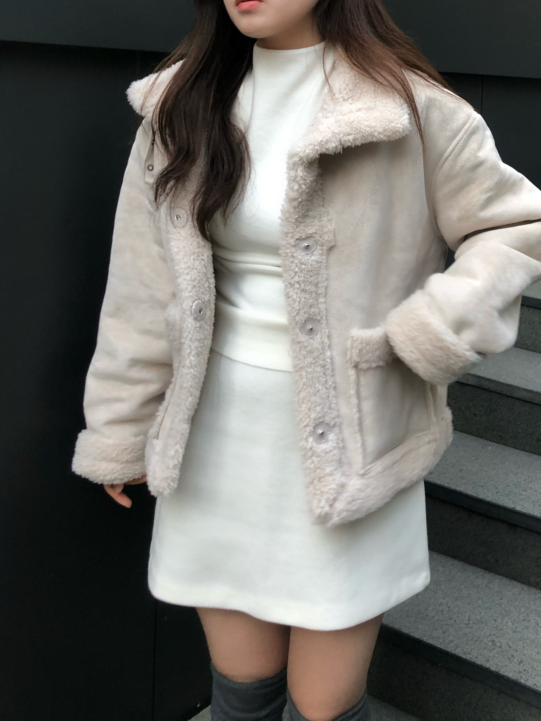 부드럽고 포근한 페이크 무스탕 소재로
