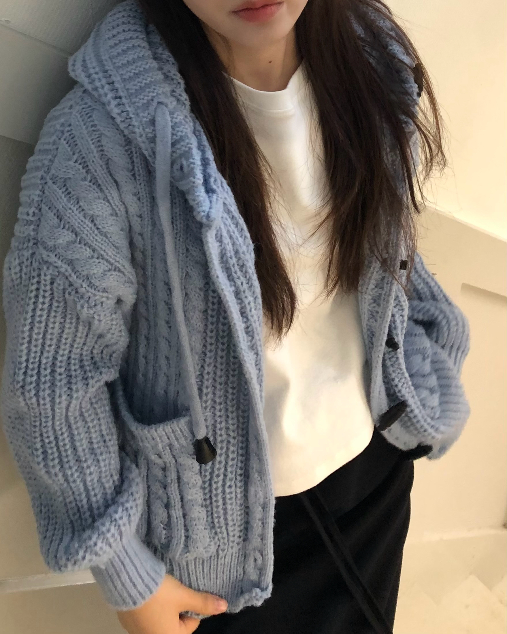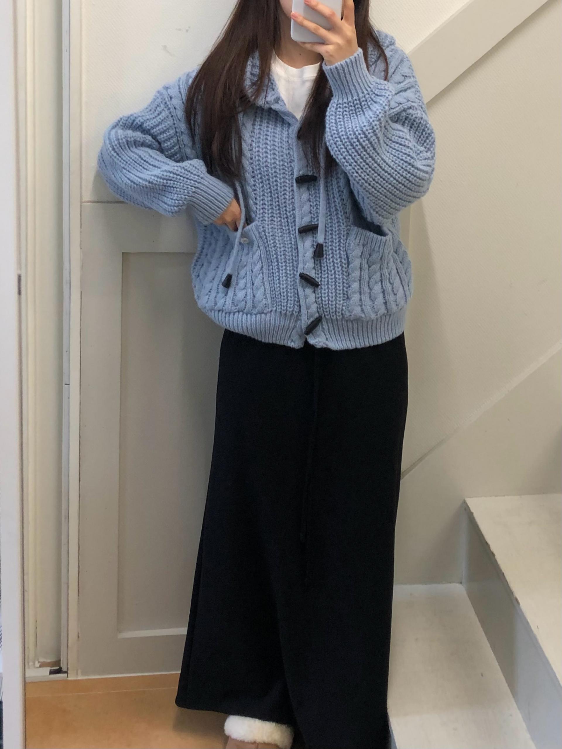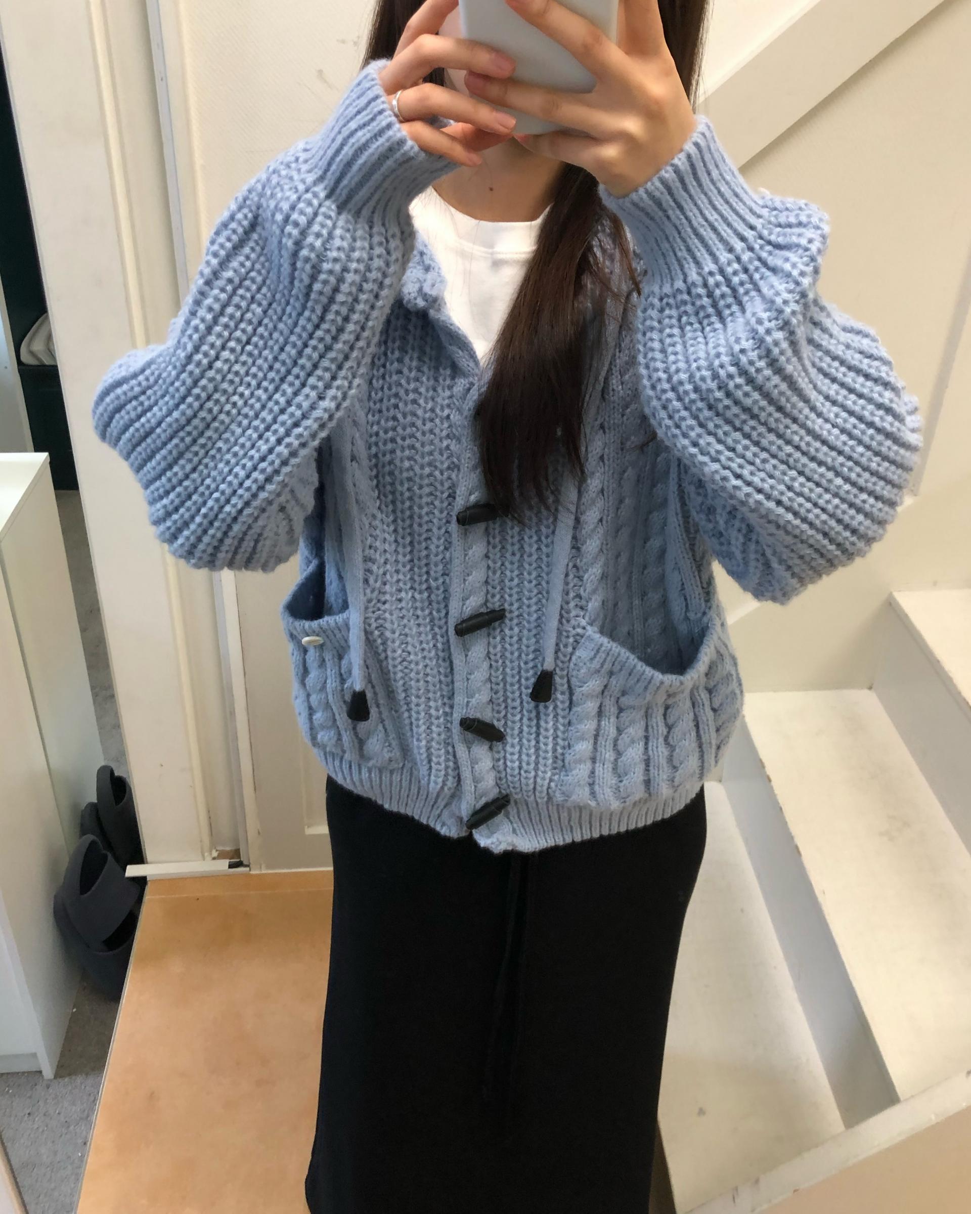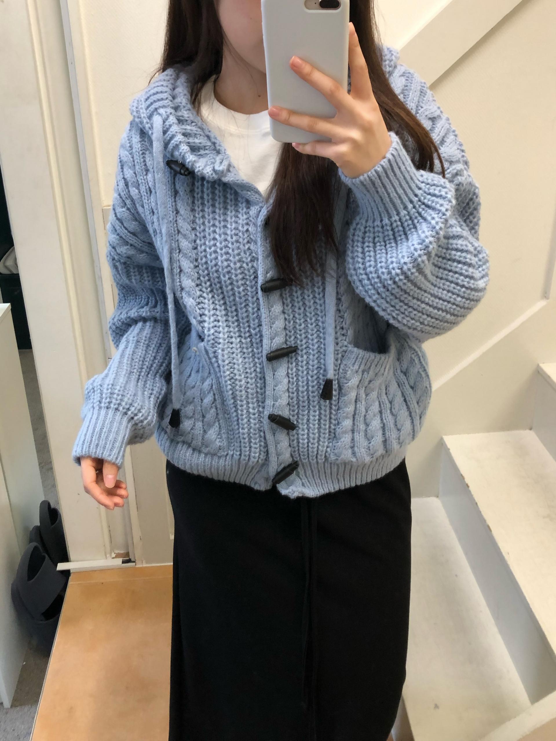 - 센던츠 꽈배기 후드 가디건 (블루)
