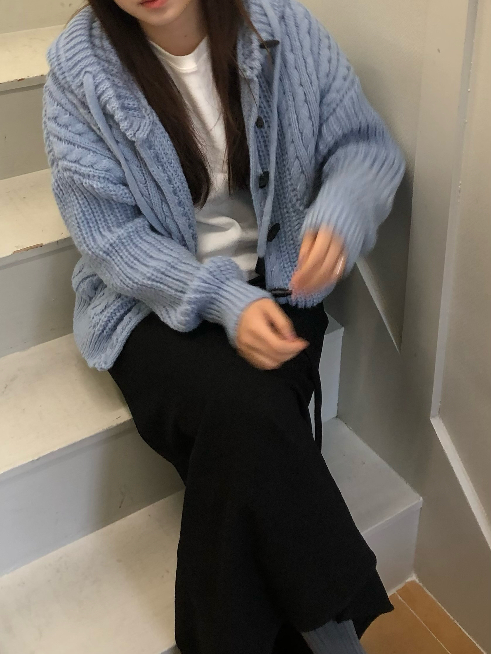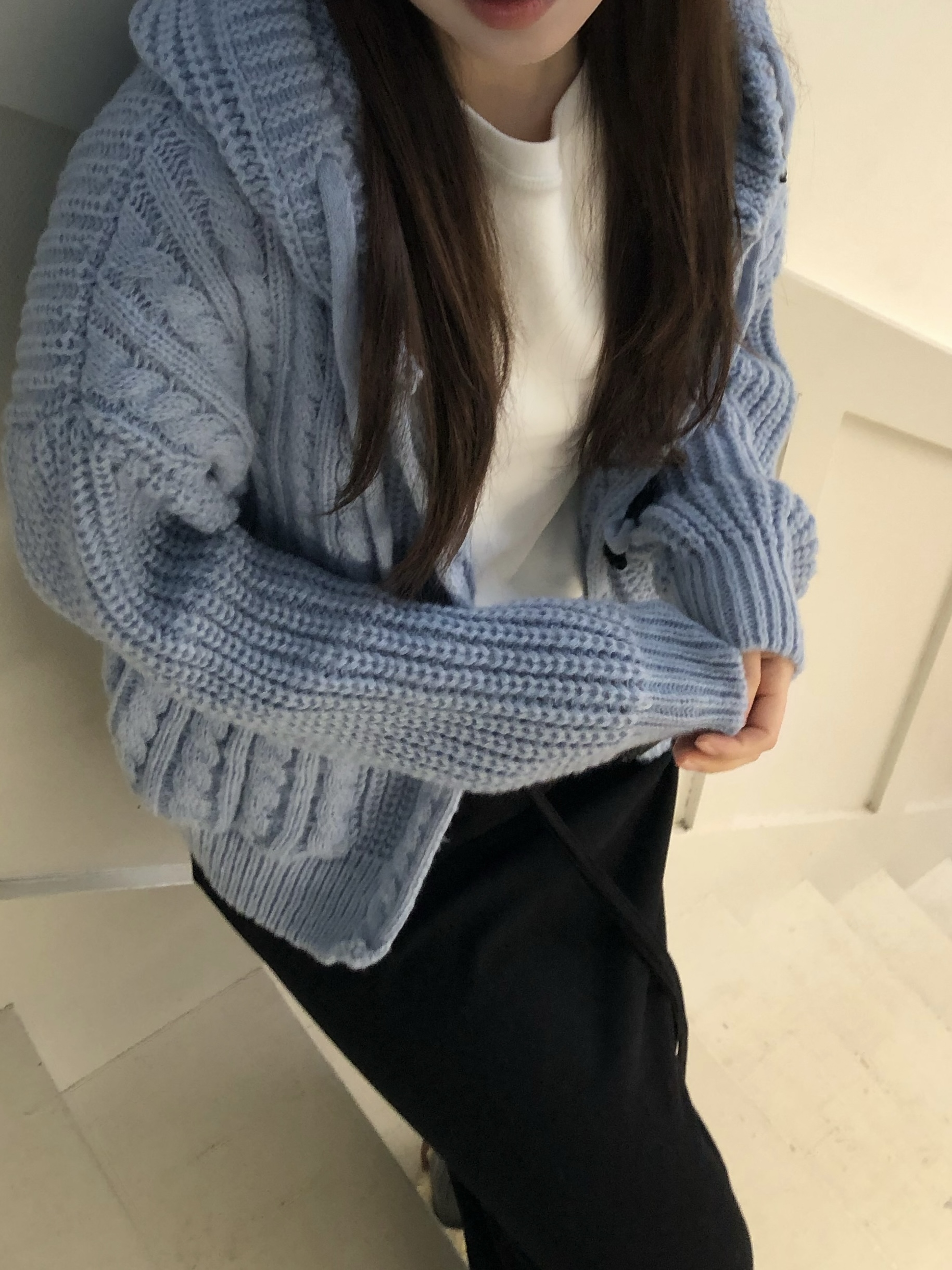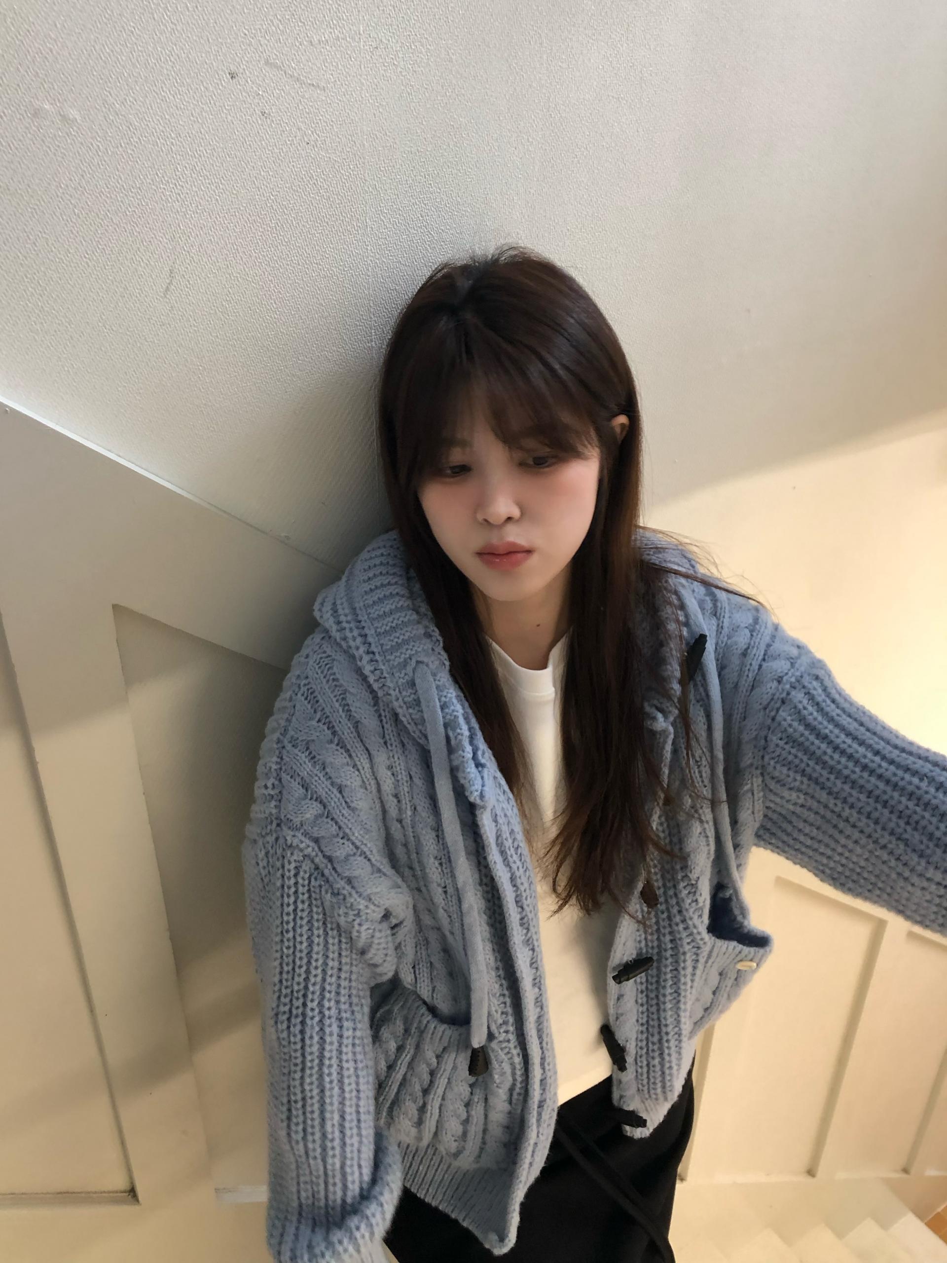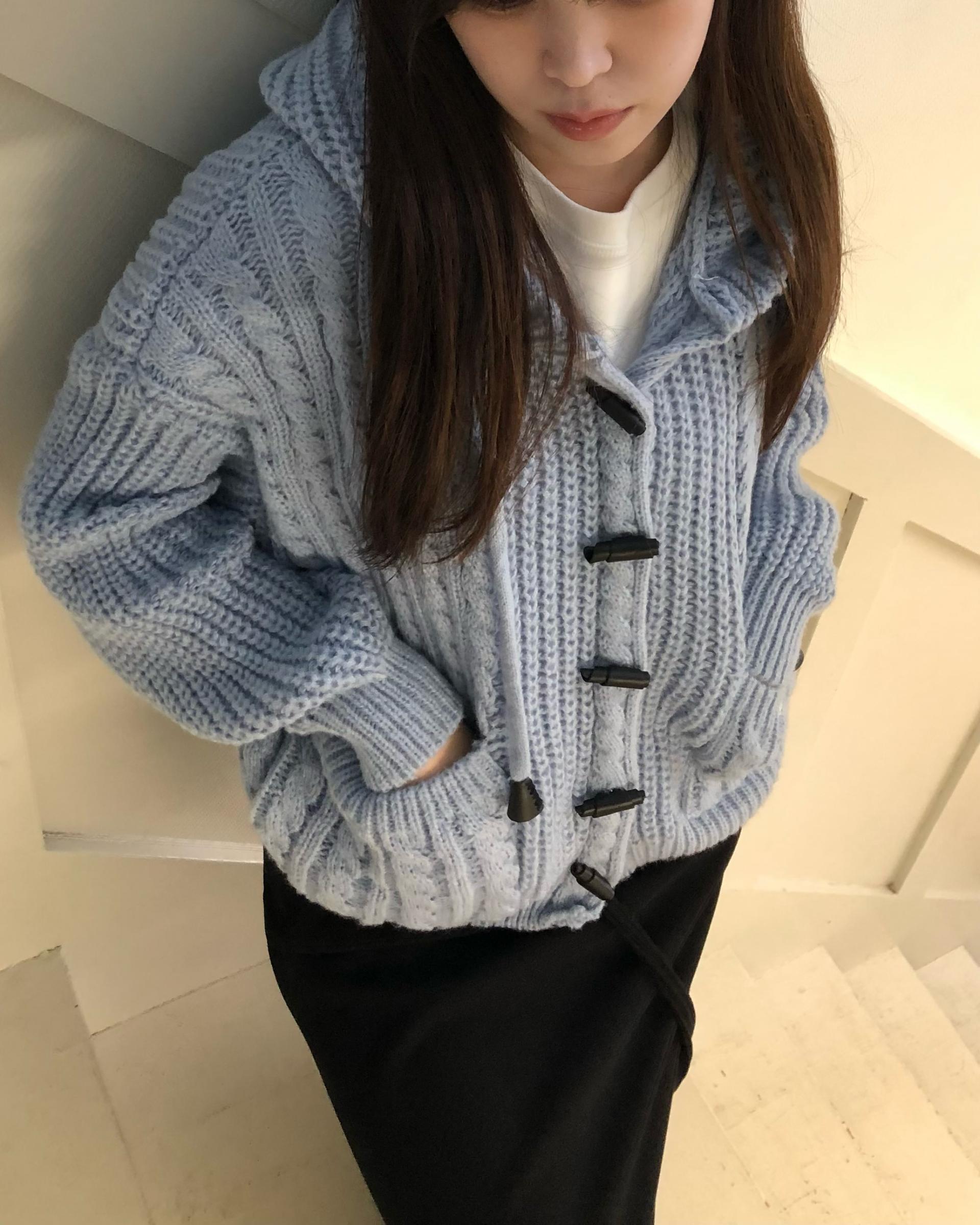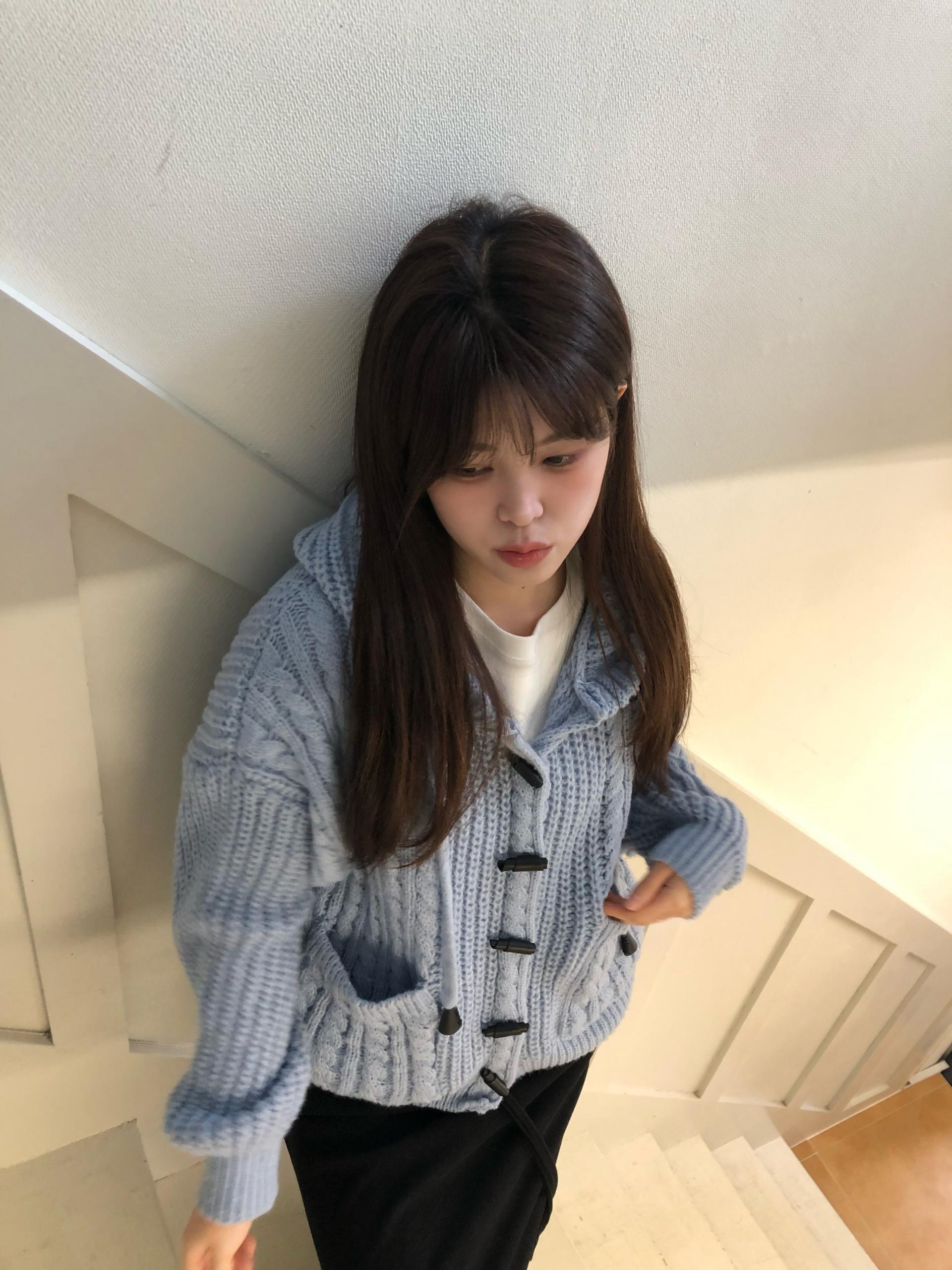 - 센던츠 꽈배기 후드 가디건 (블루)