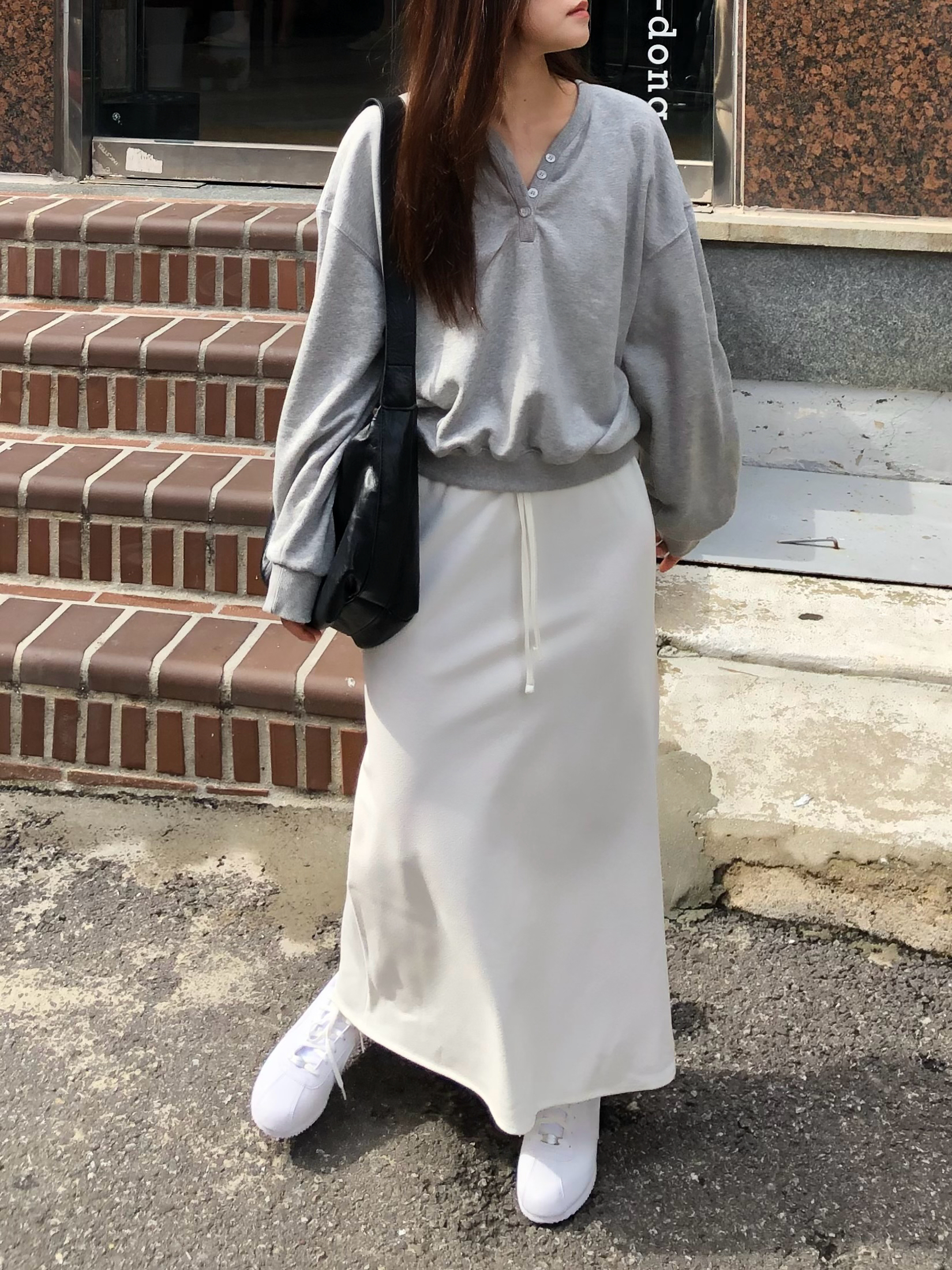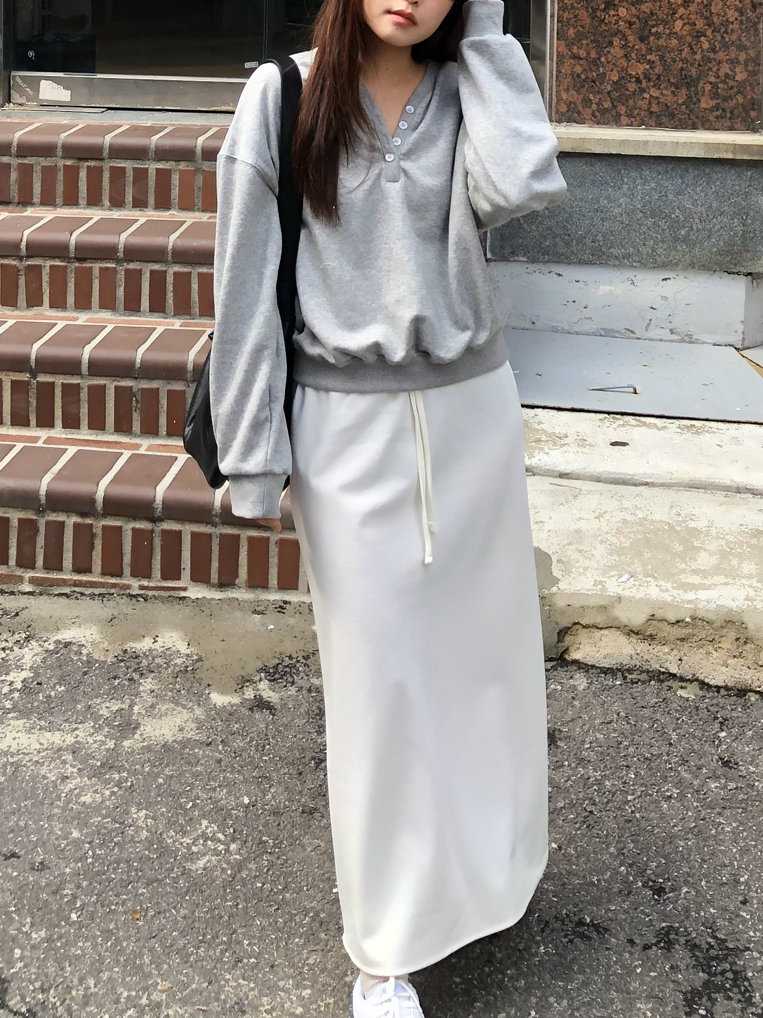 활용도 높게 매치할 수 있는 롱 스커트예요
