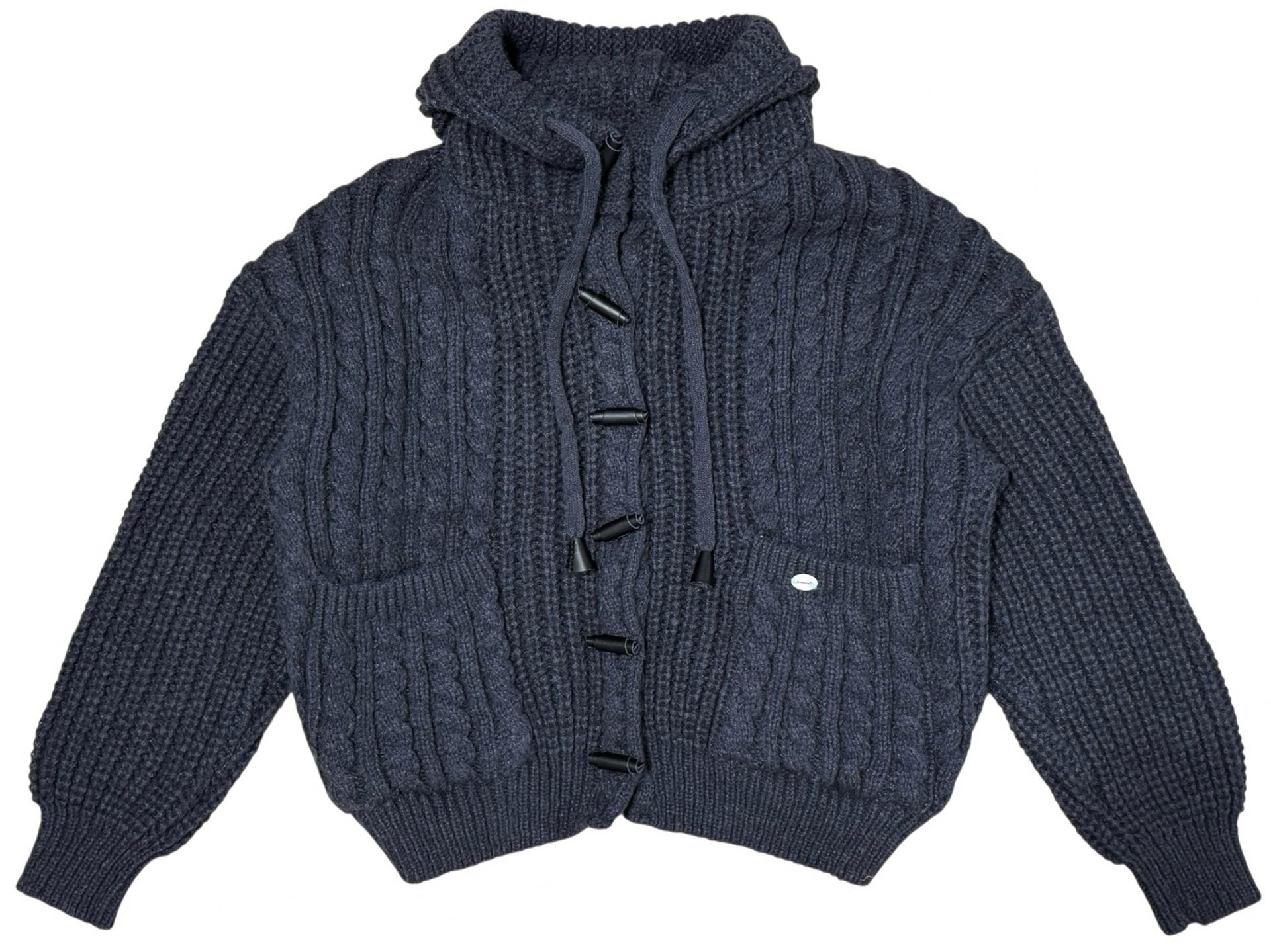 도톰한 꽈배기 니트 짜임으로 포근하고 안정감 있는 실루엣을 완성해요