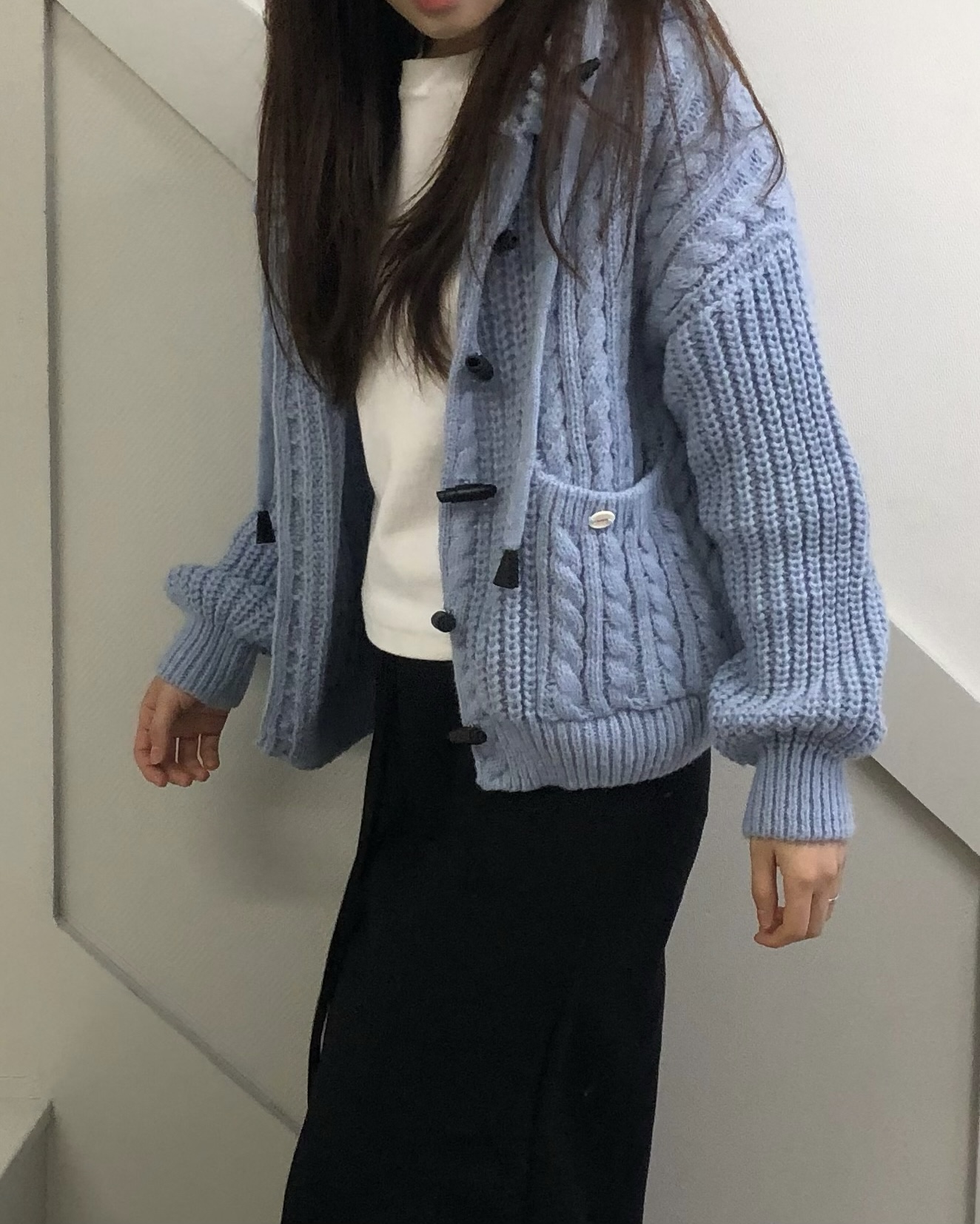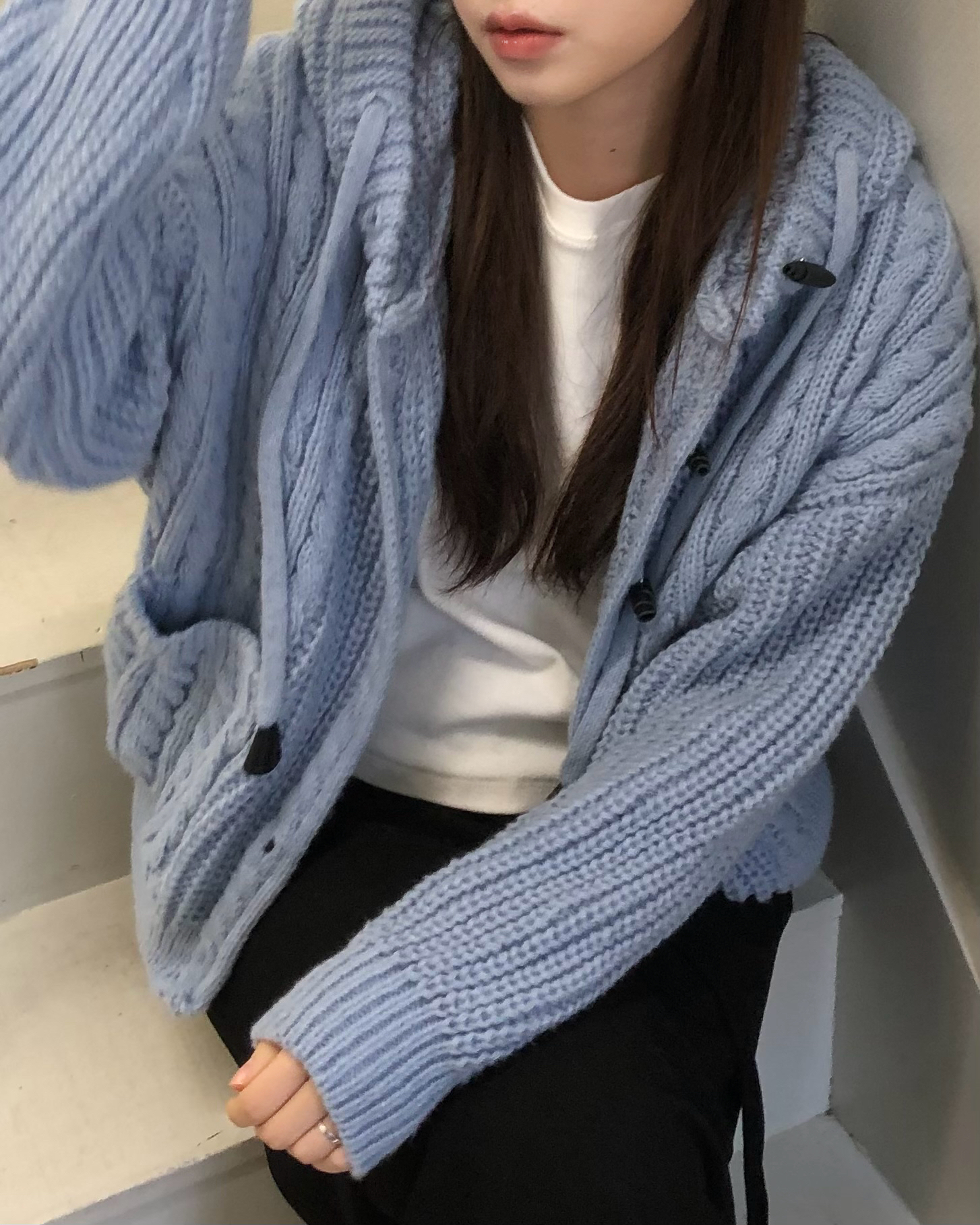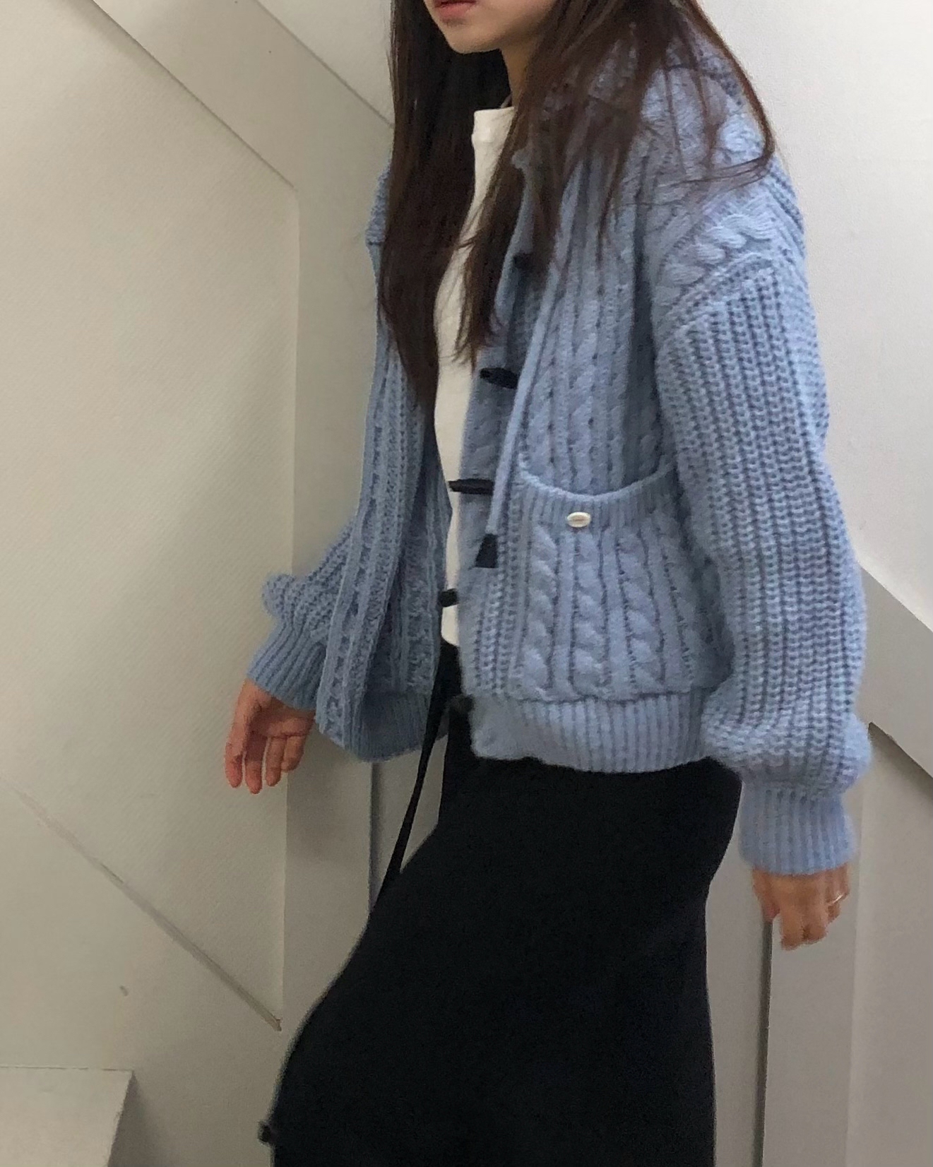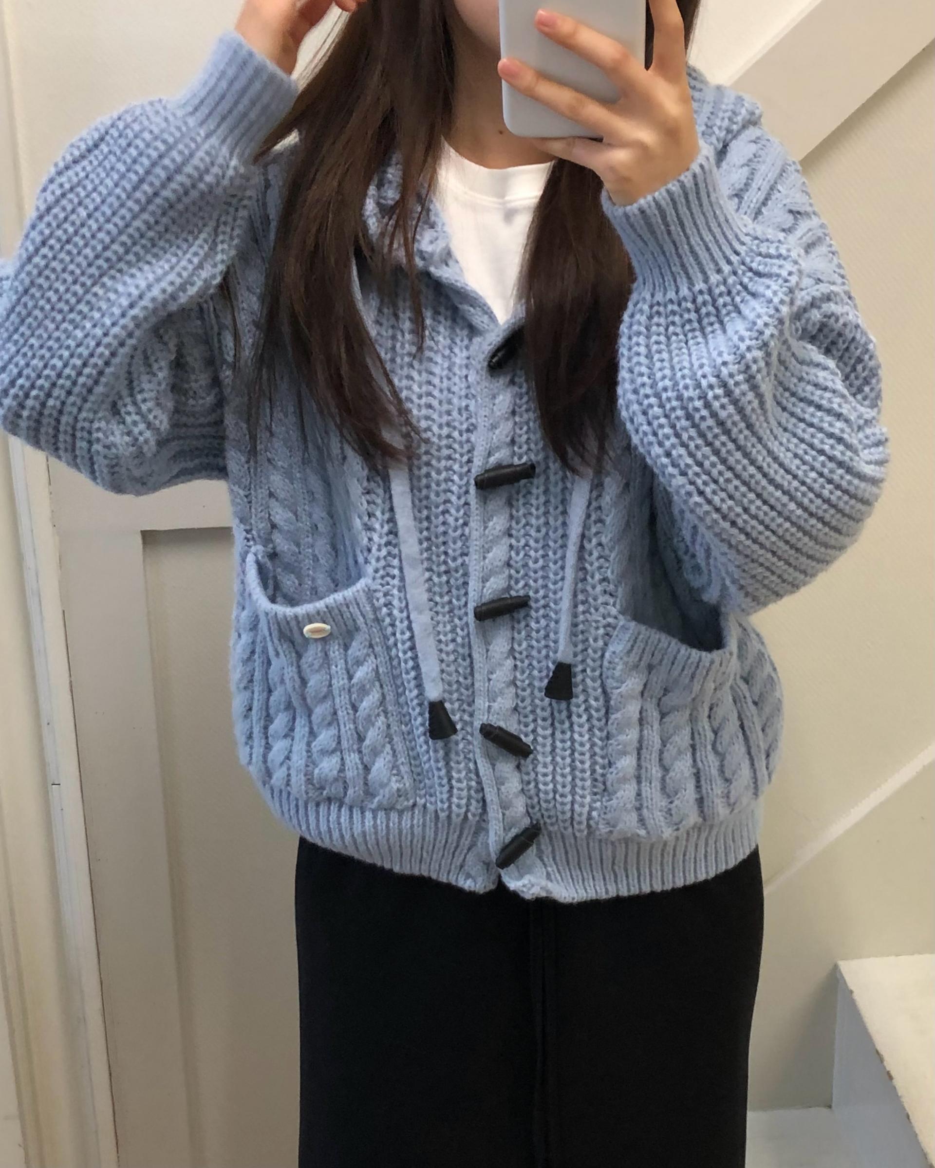 도톰한 꽈배기 니트 짜임으로 포근하고