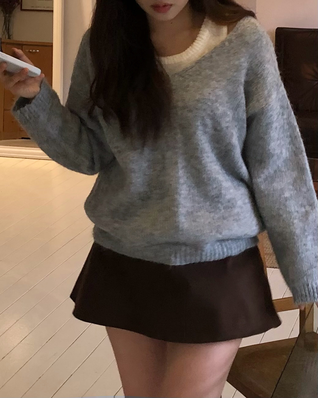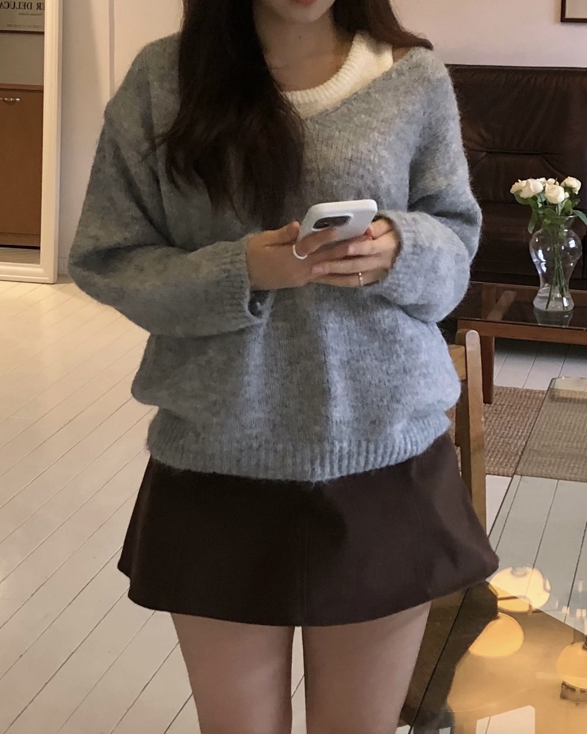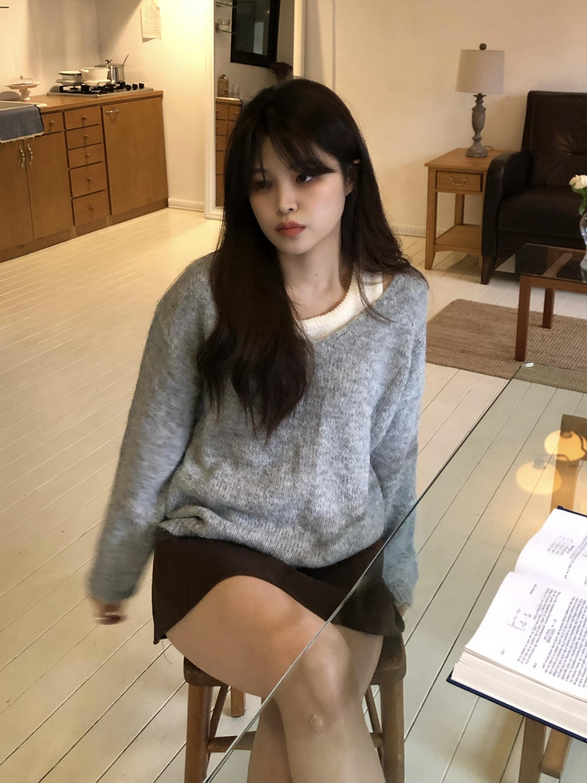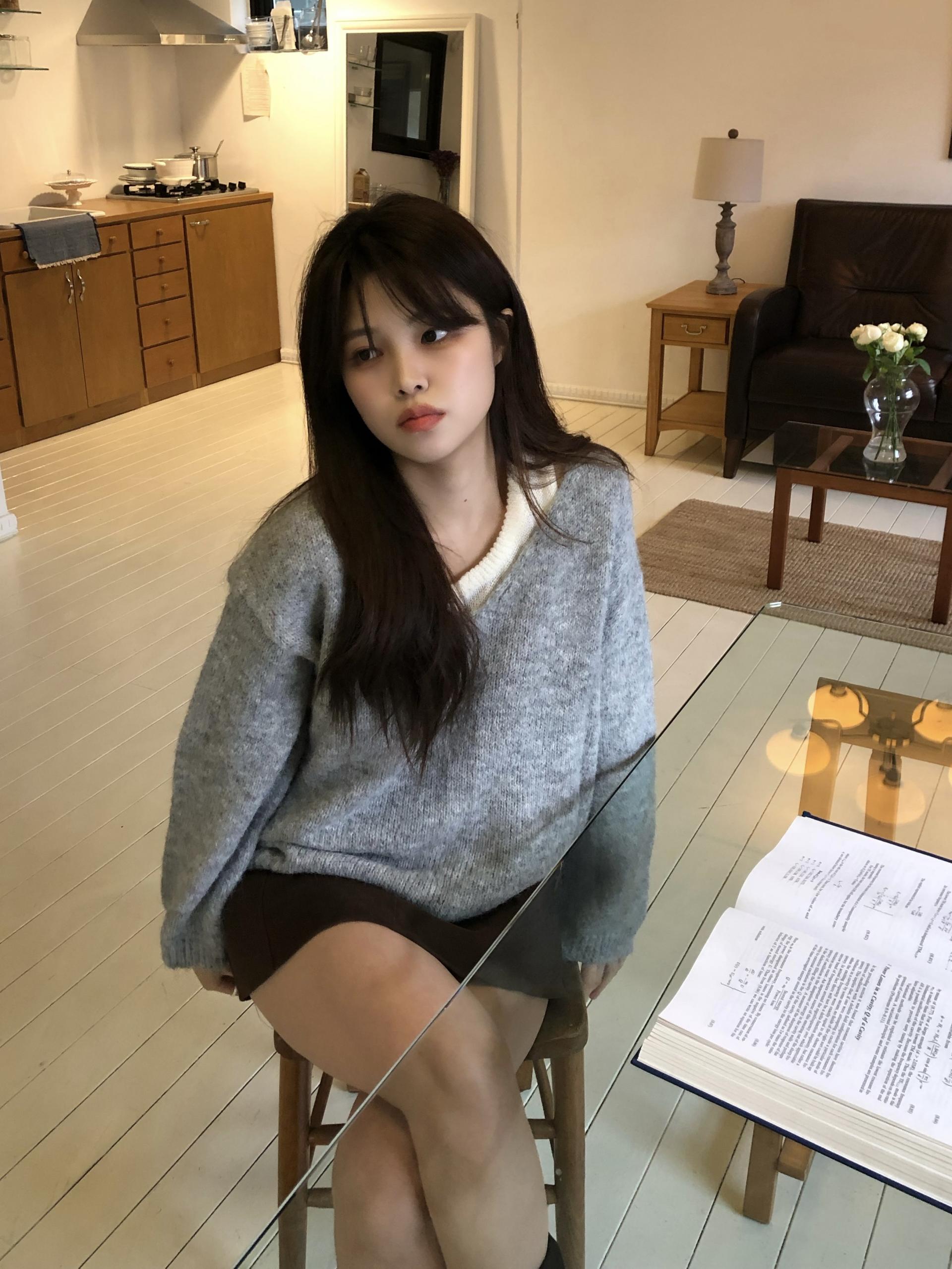 슬리브리스와 브이넥 니트가