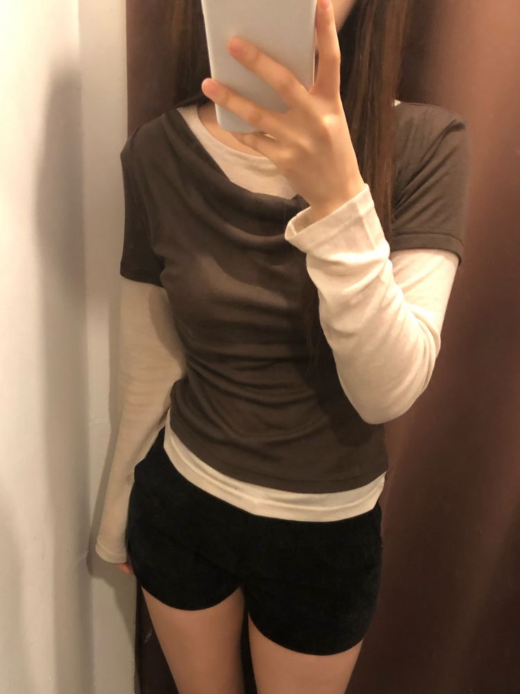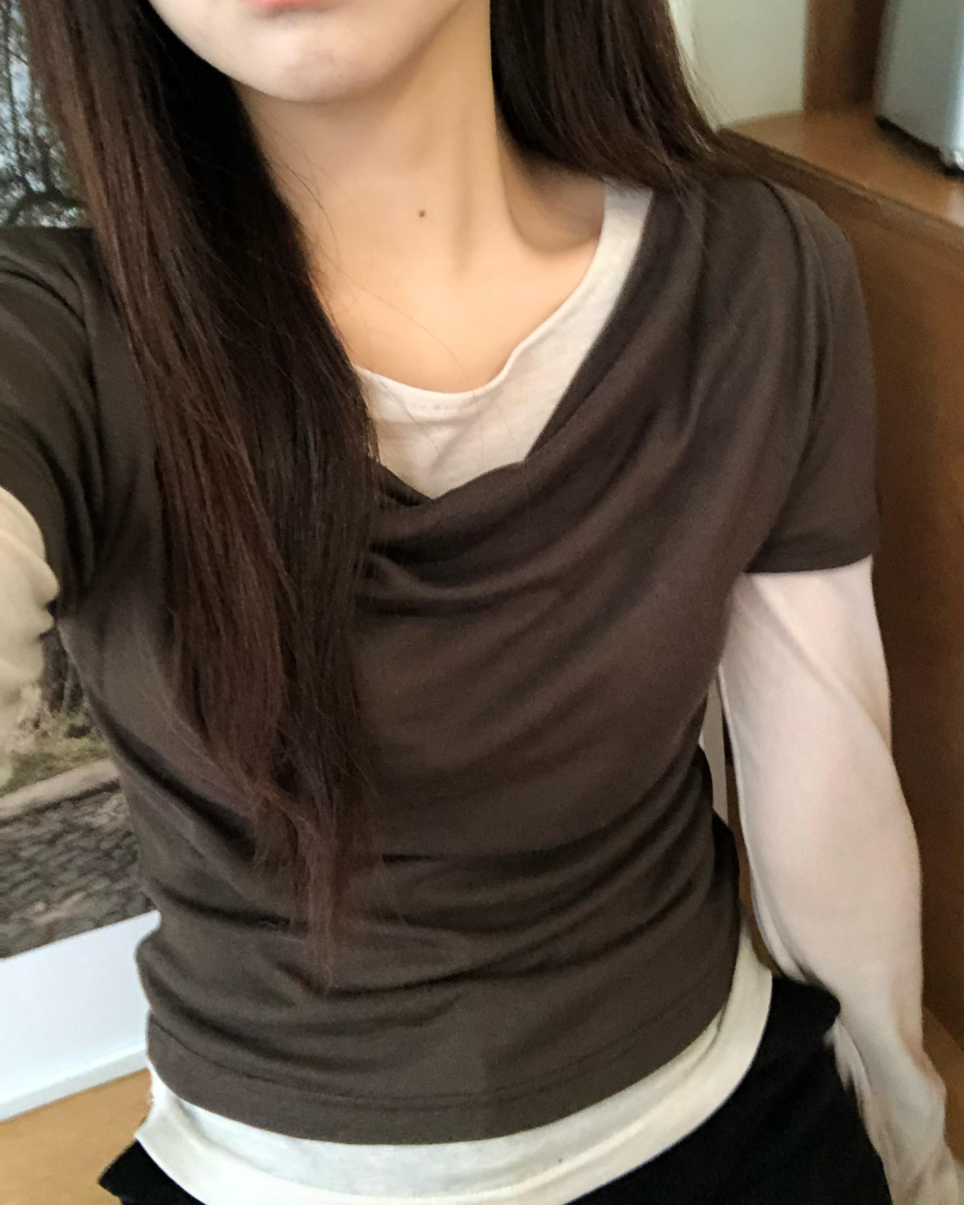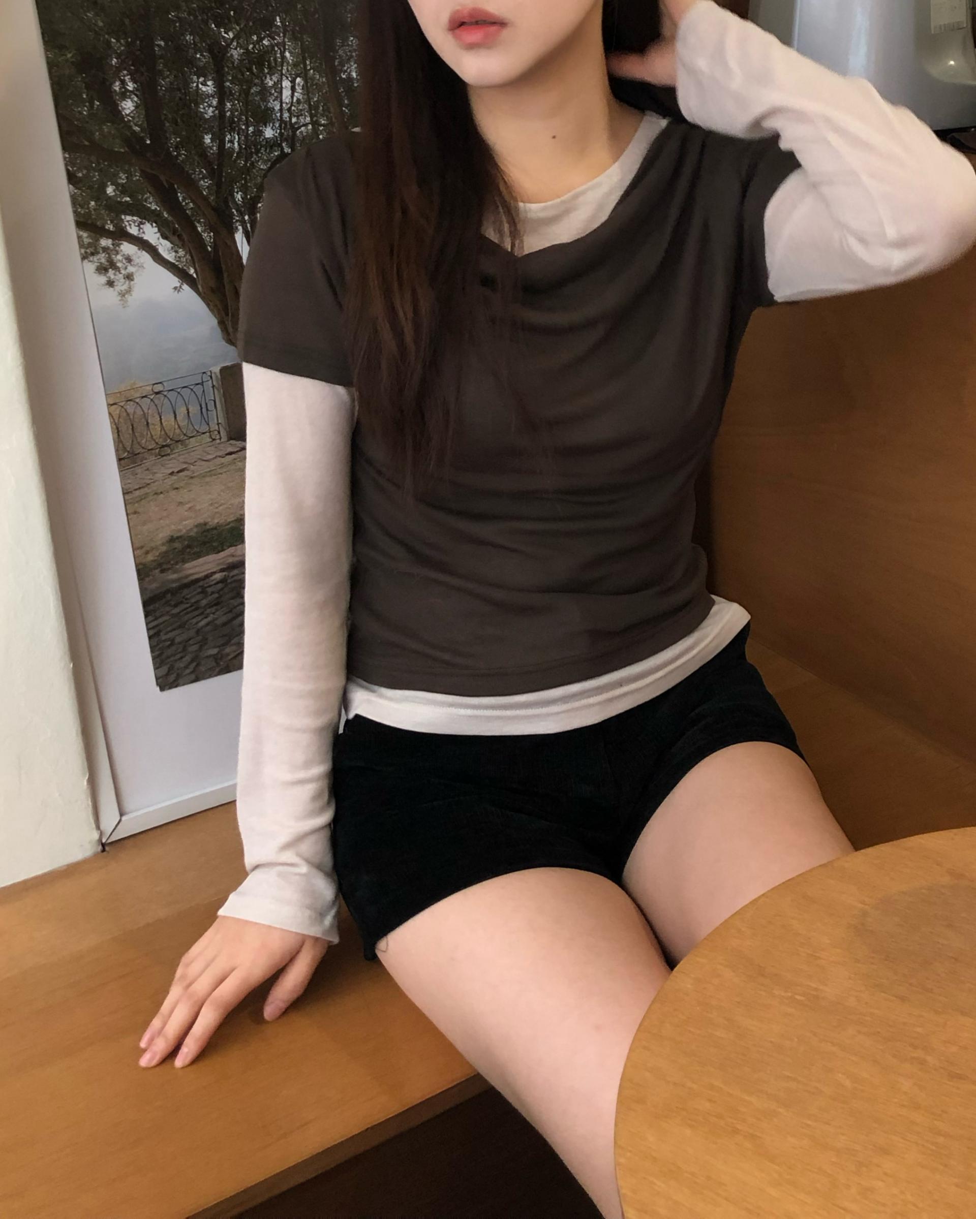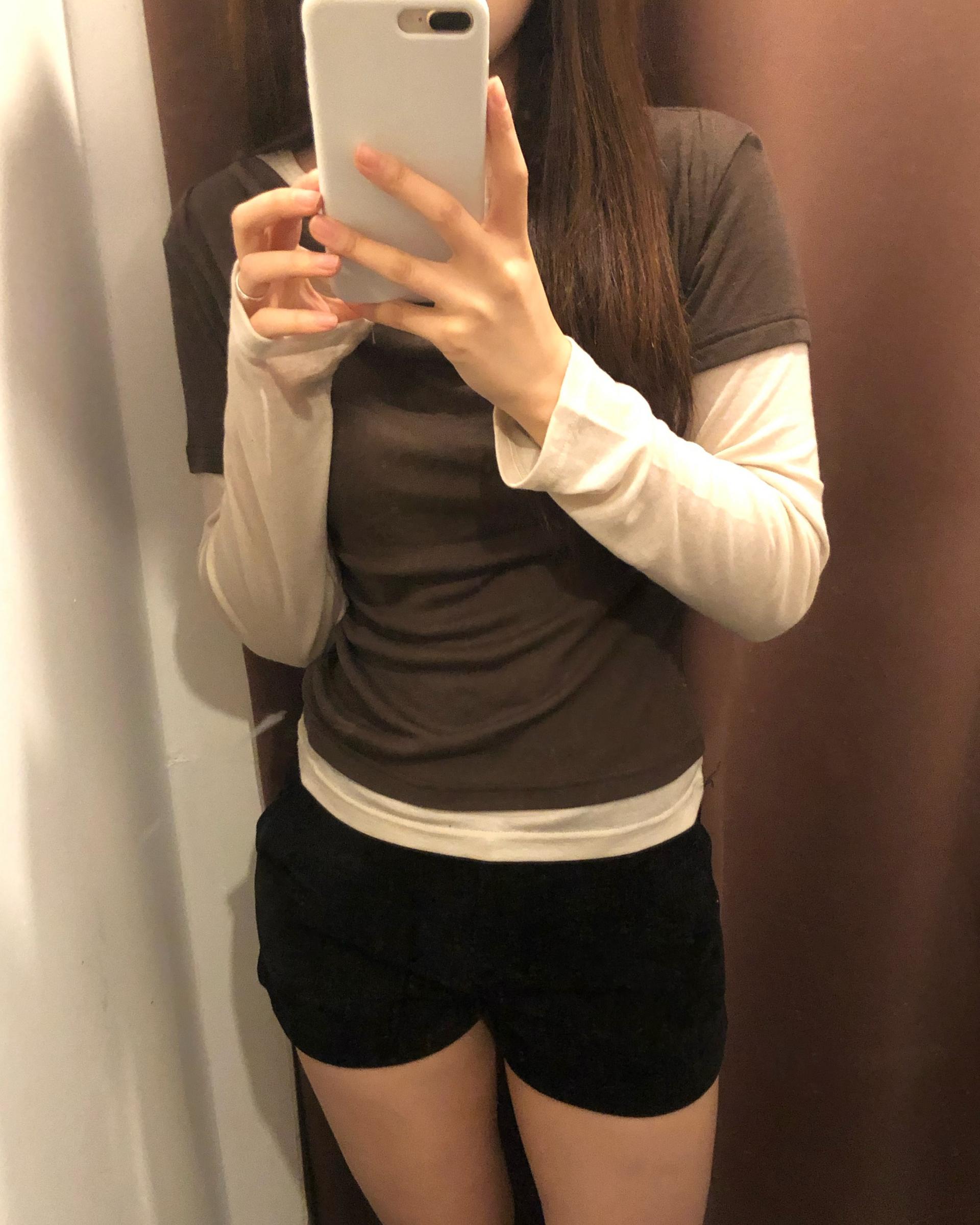 반팔 티셔츠 레이어드 디자인으로 단독 착용만으로도