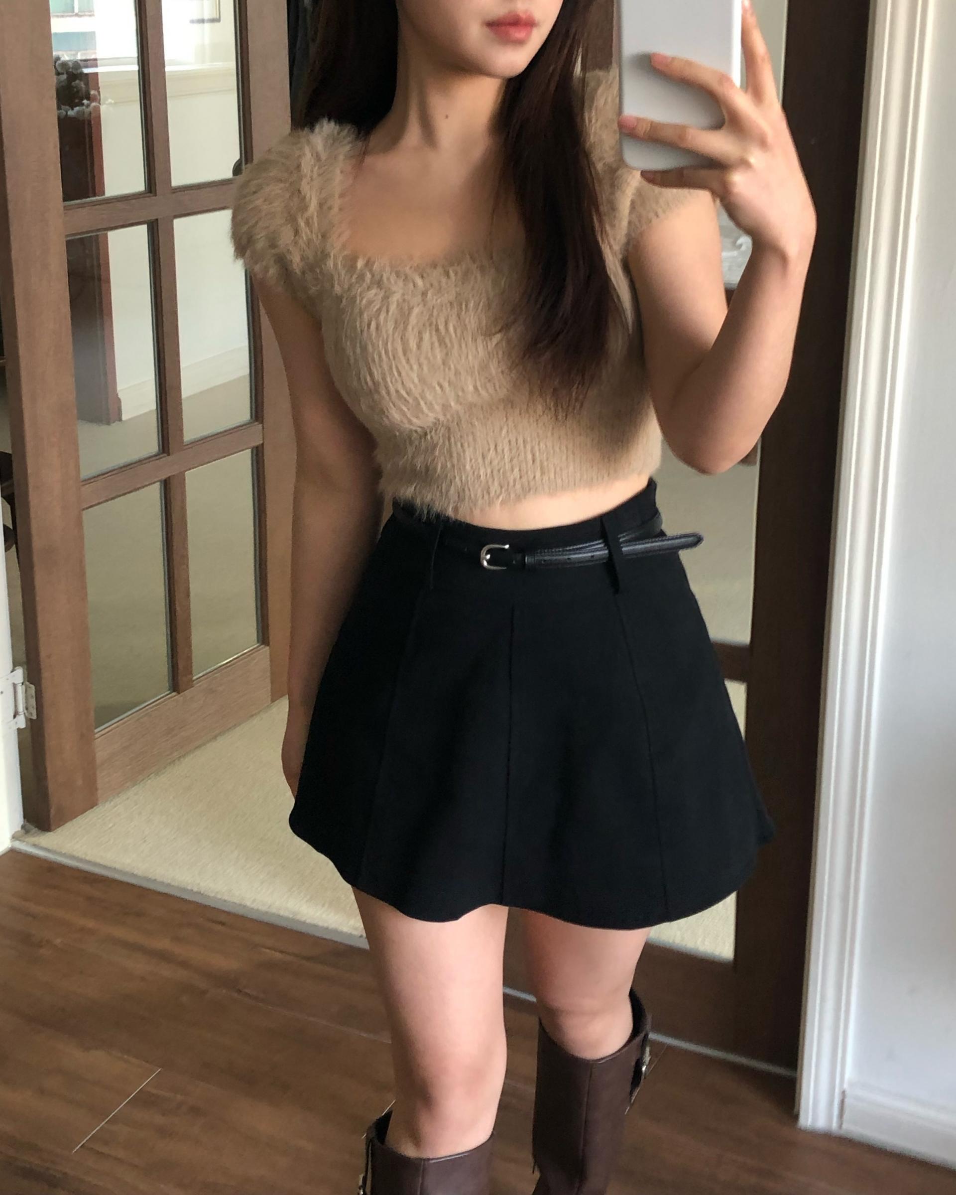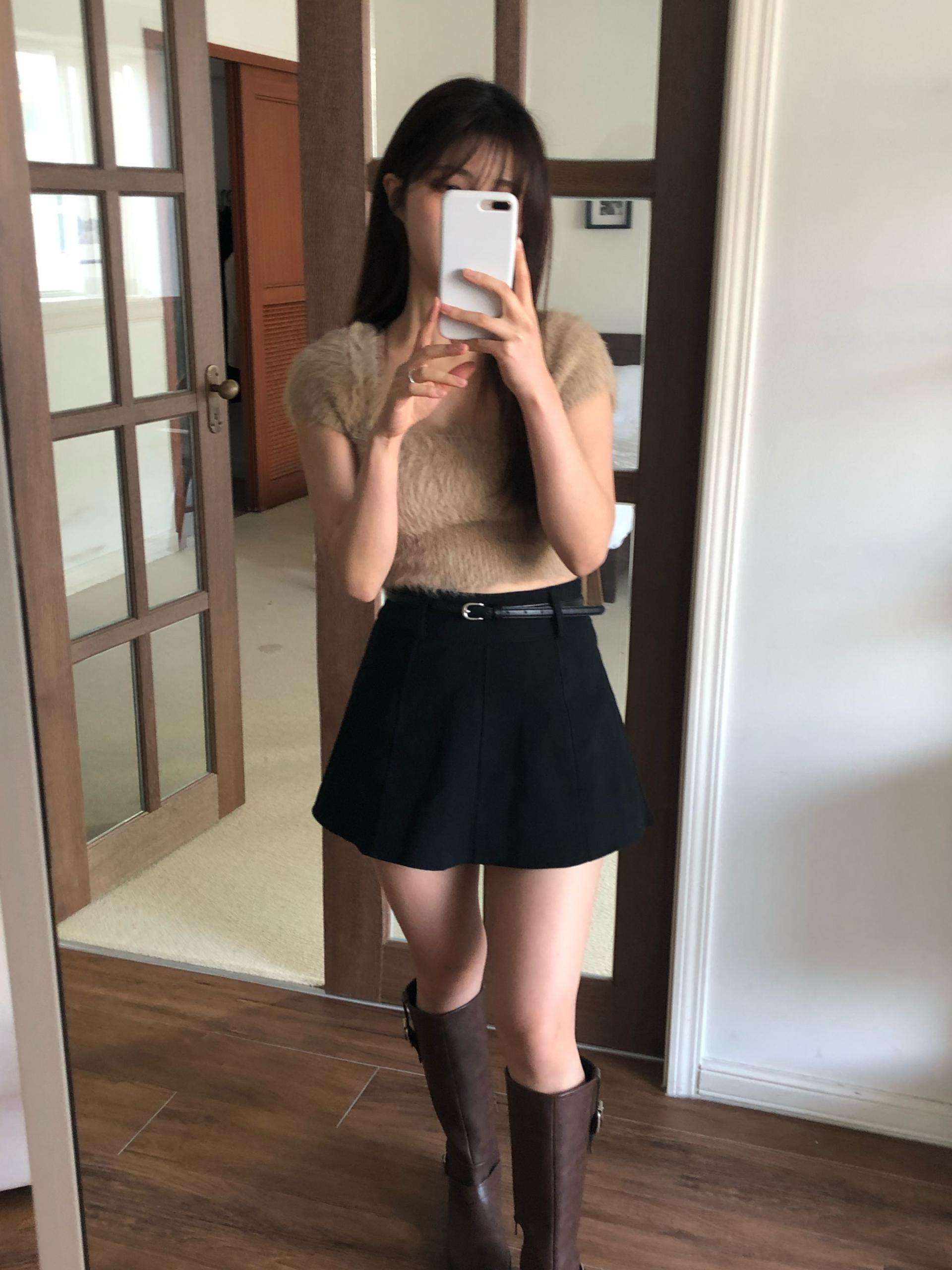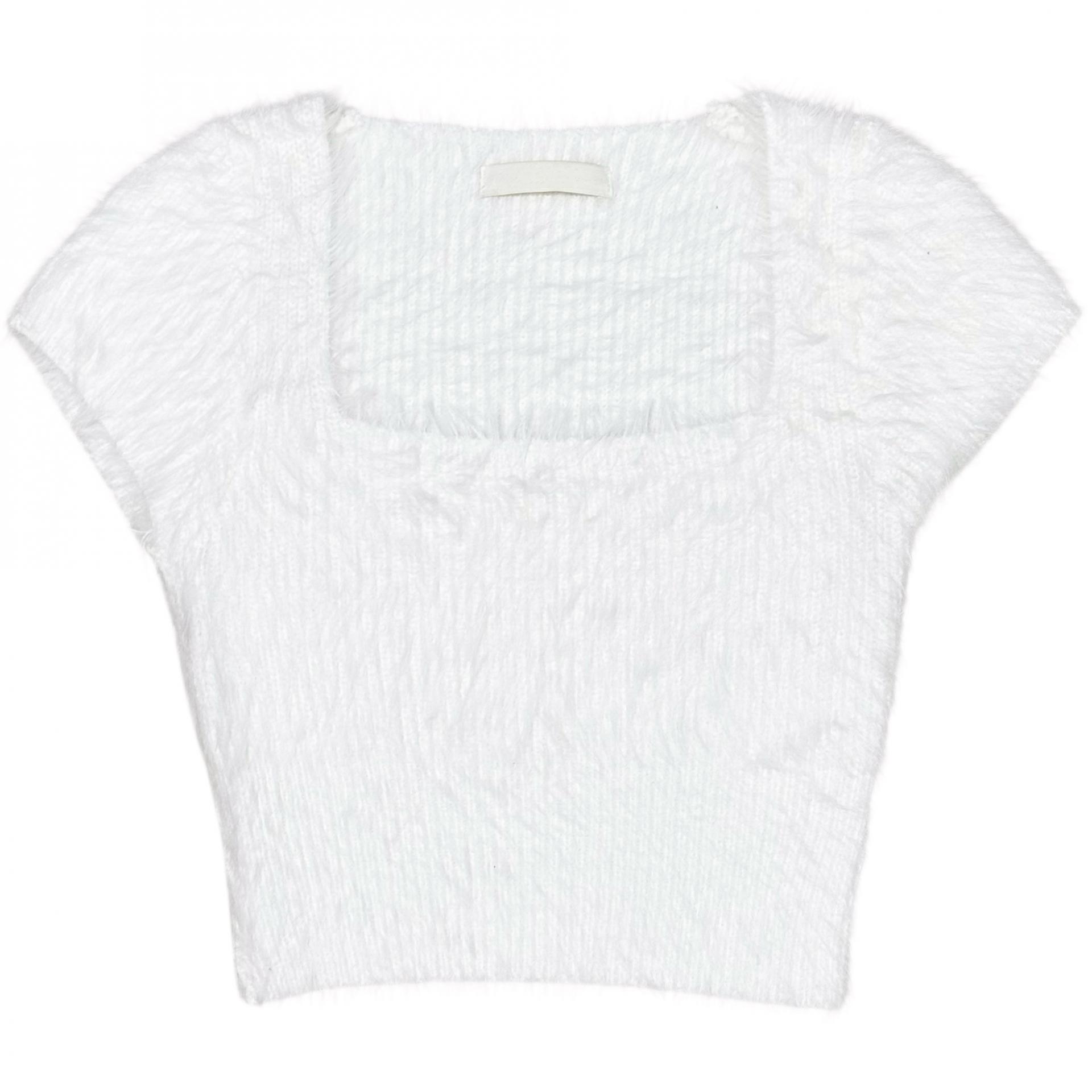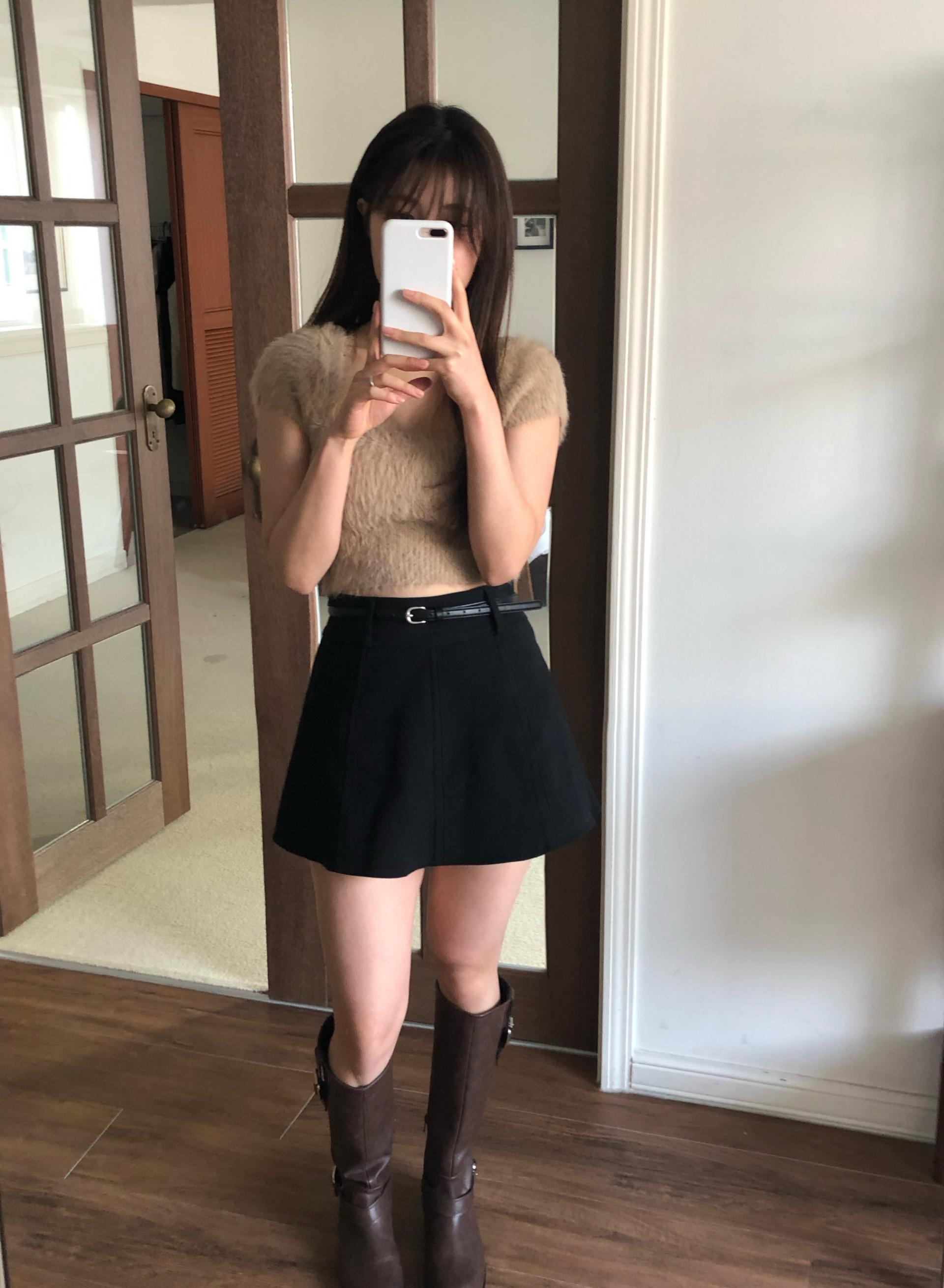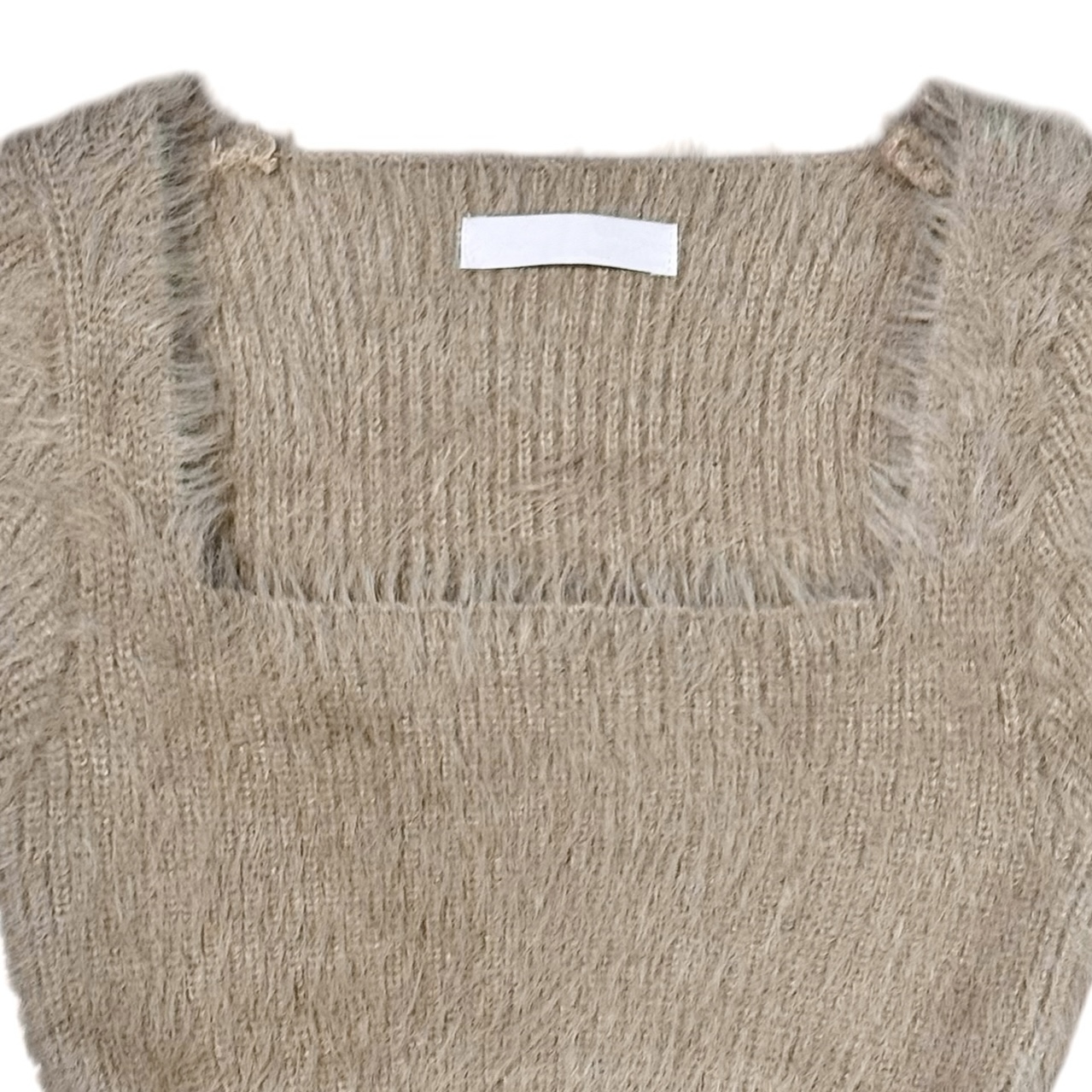 퍼 텍스처가 더해진 브러쉬 니트 소재로 포근하고 여성스러운 무드를 연출하며