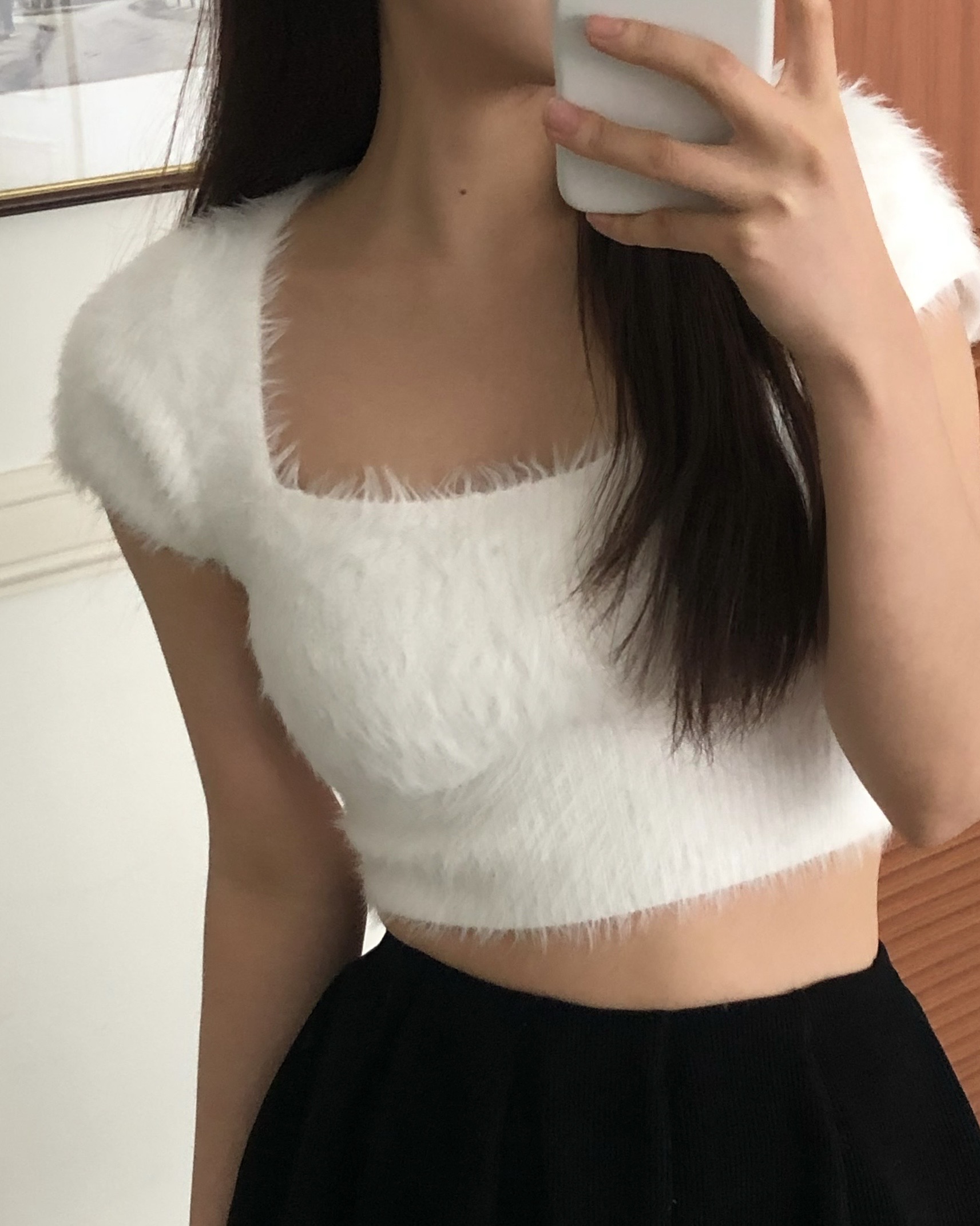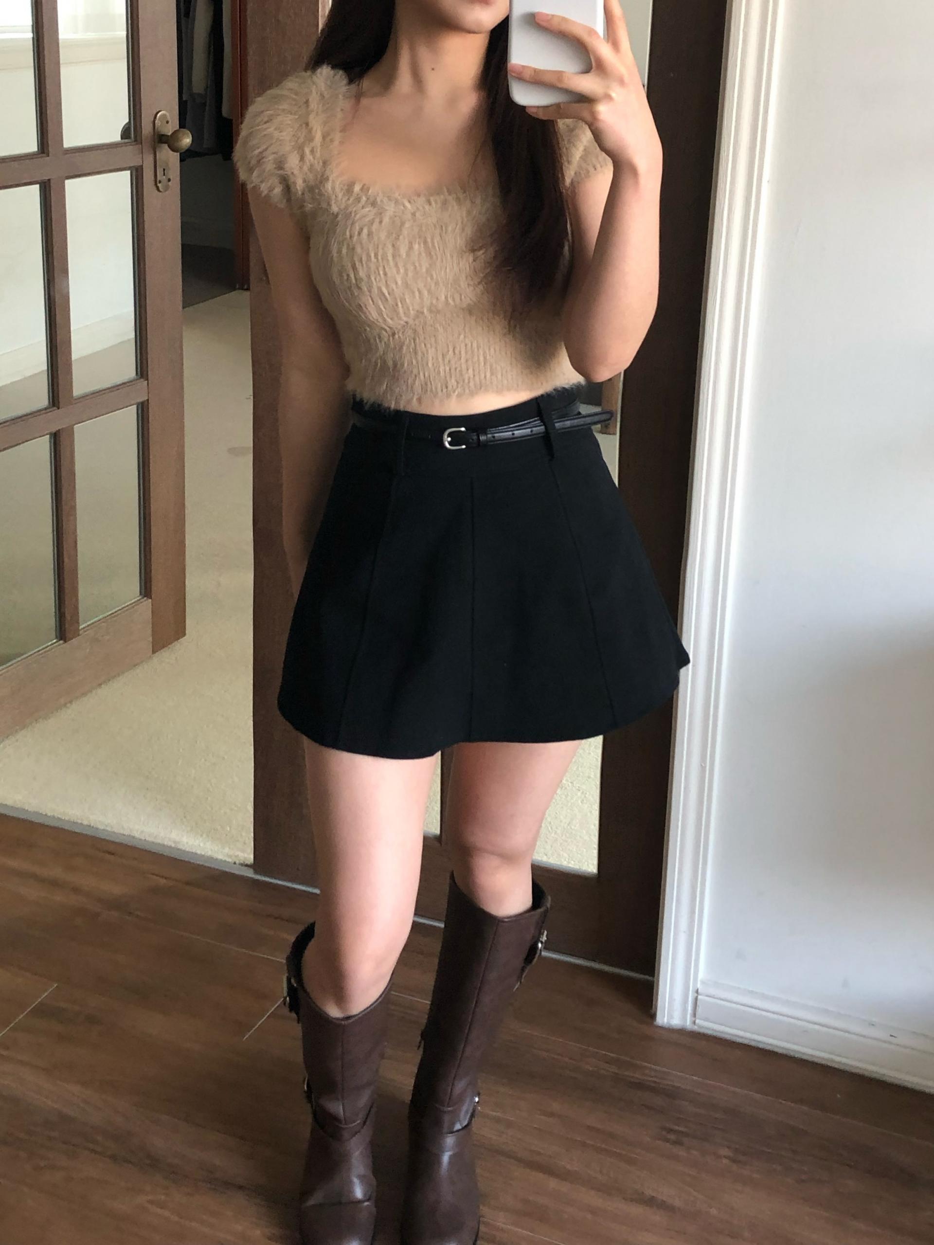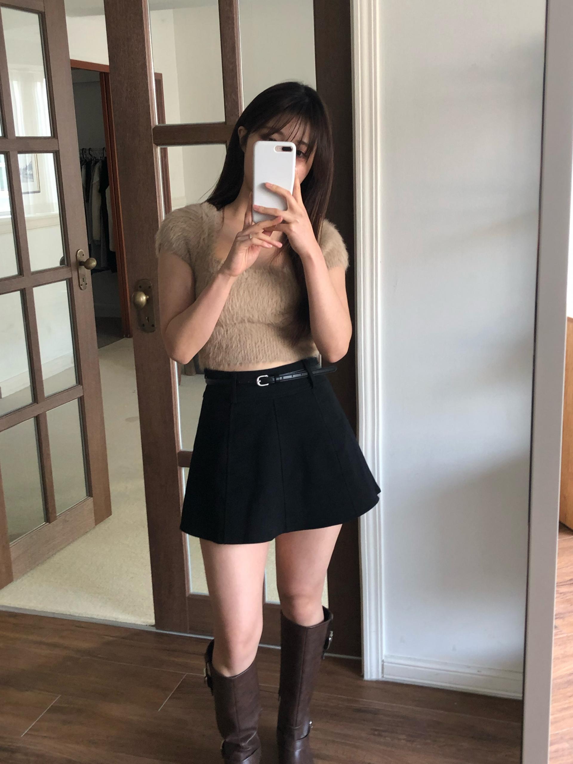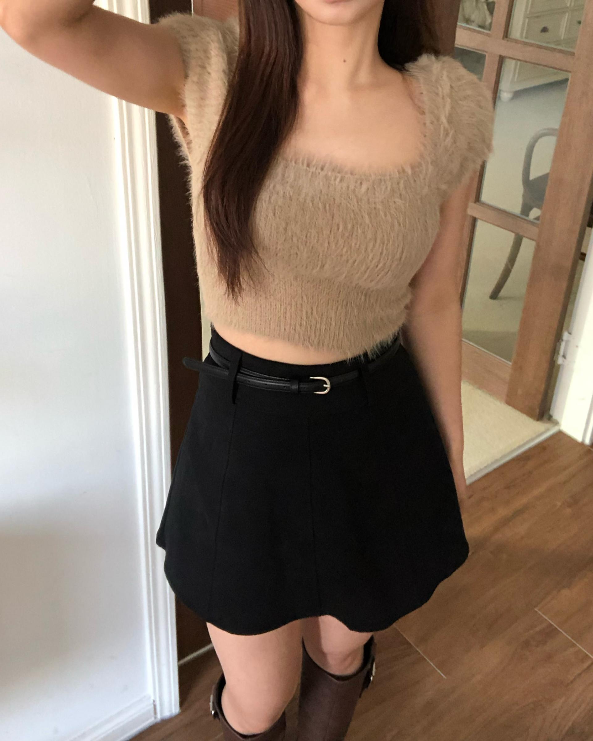 퍼 텍스처가 더해진 브러쉬 니트 소재로 포근하고 여성스러운 무드를 연출하며