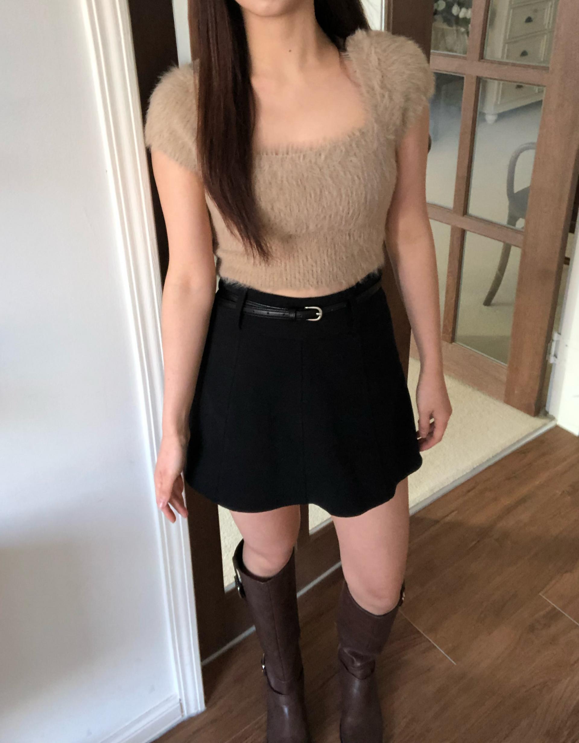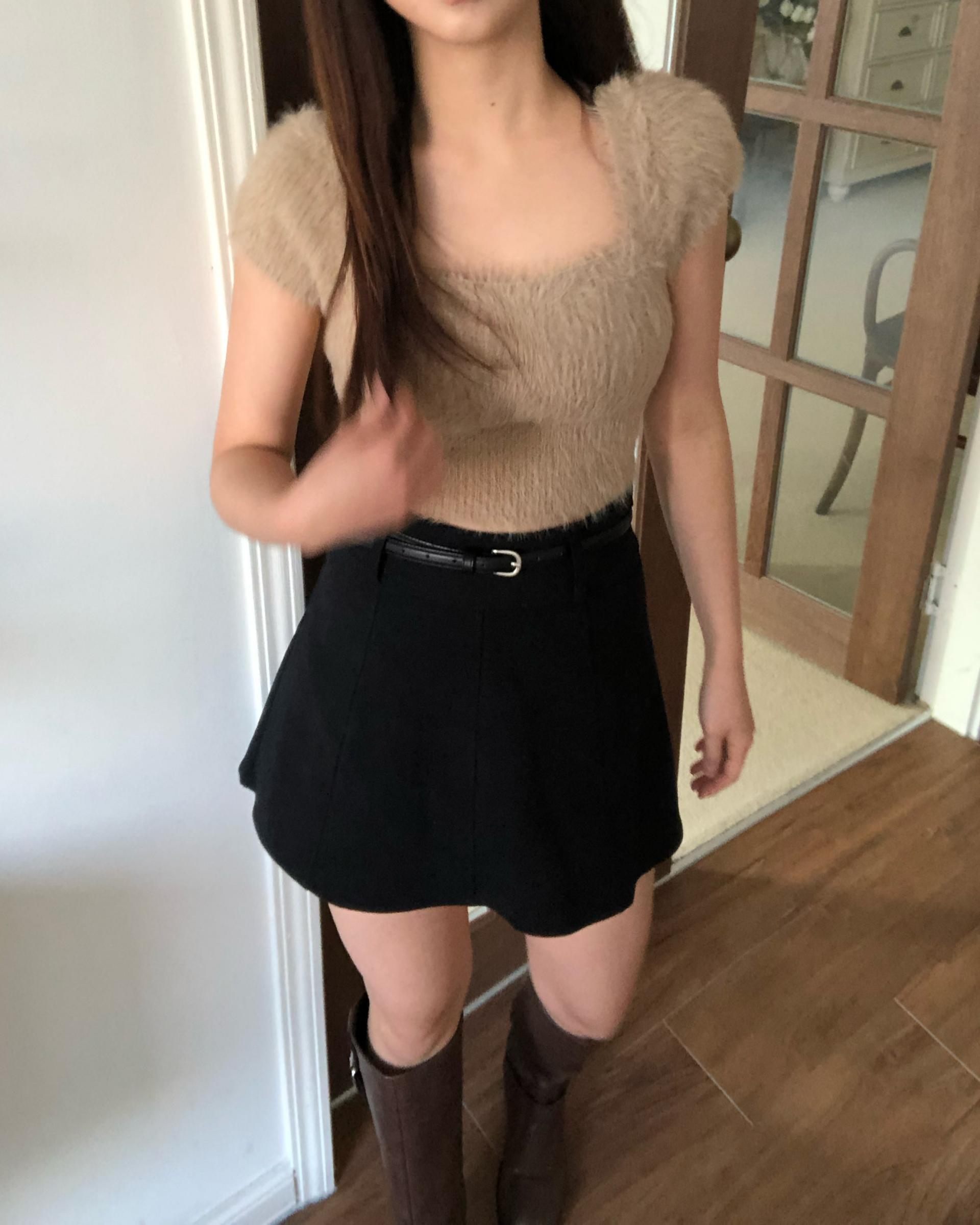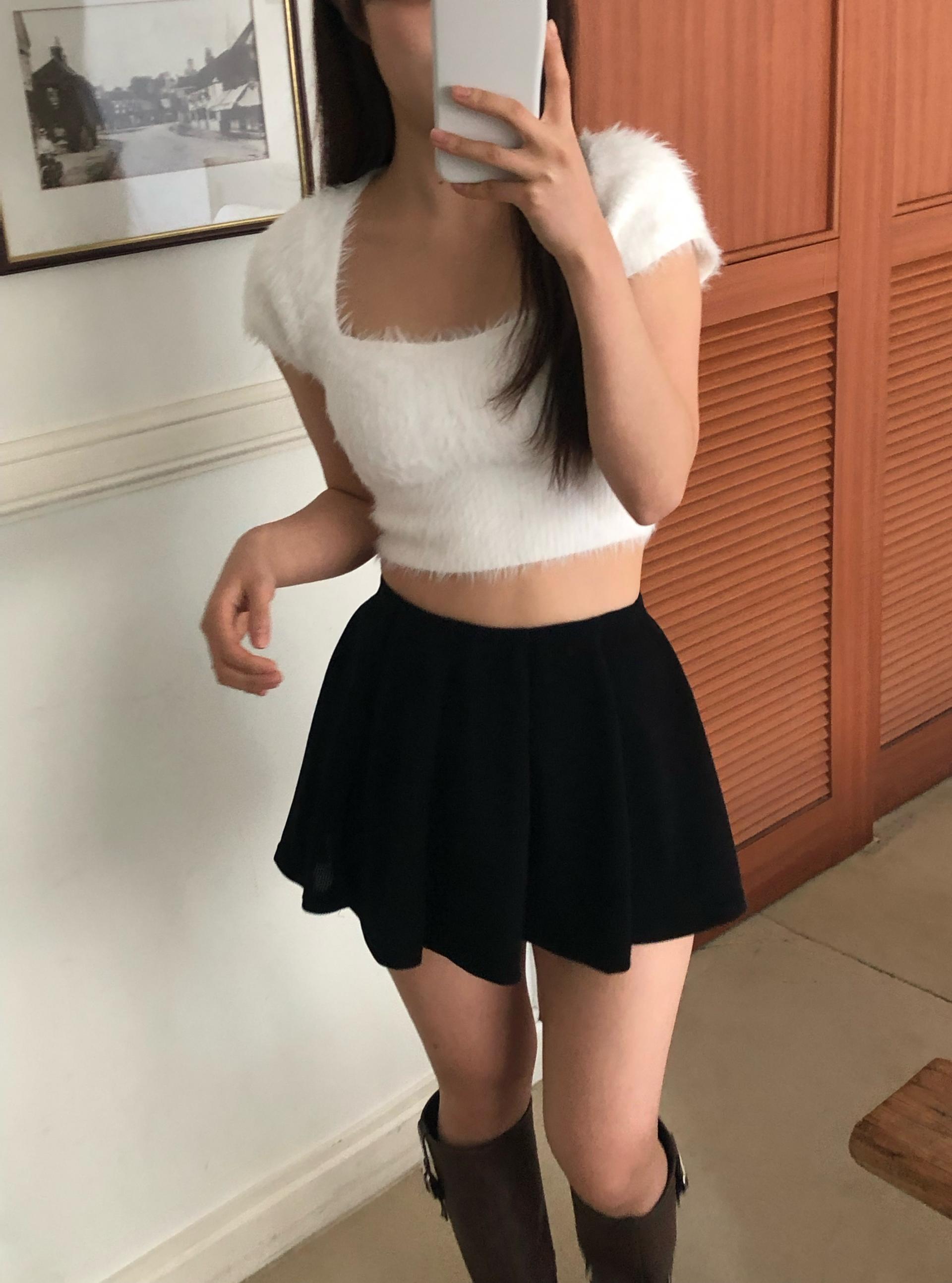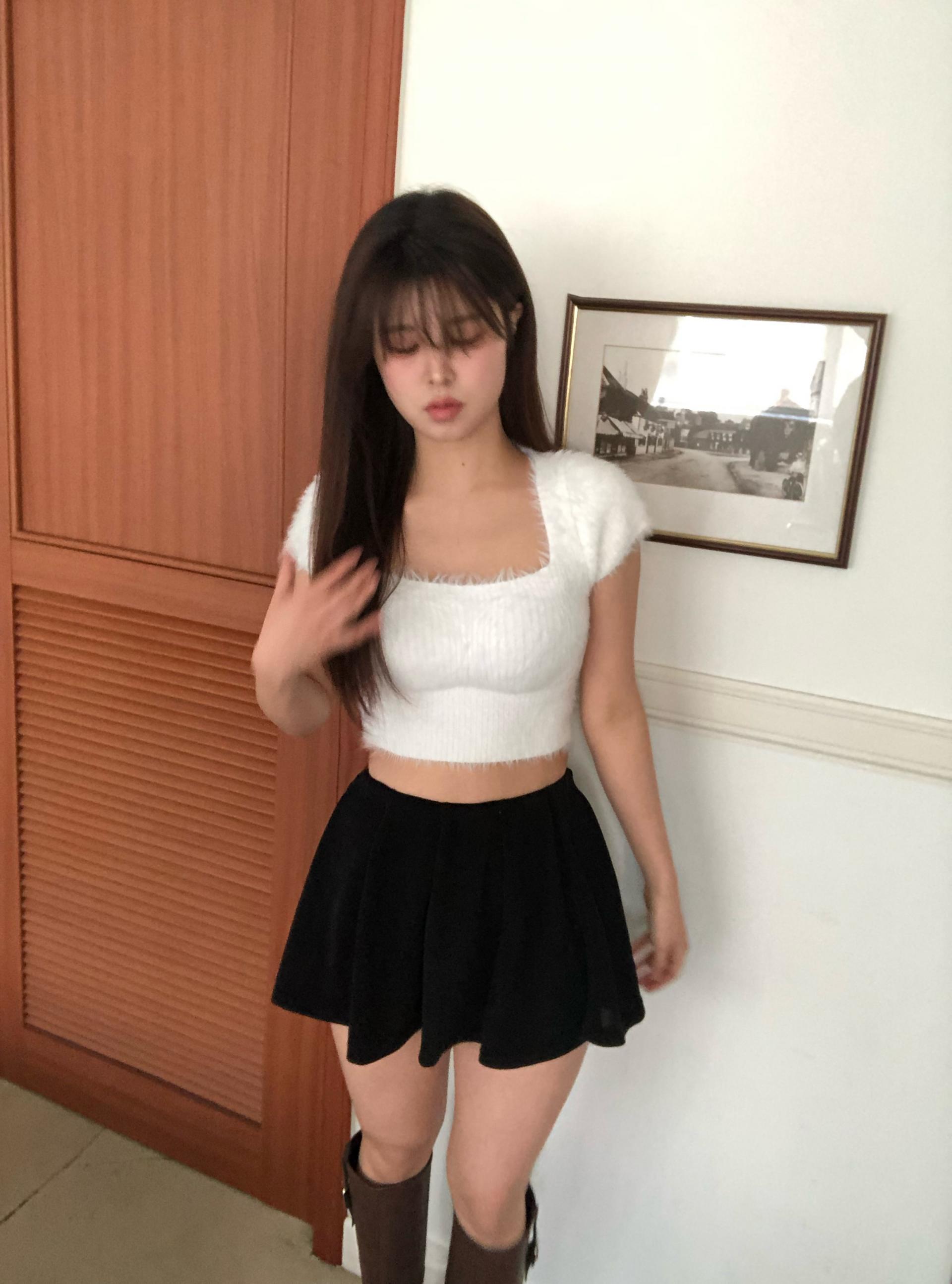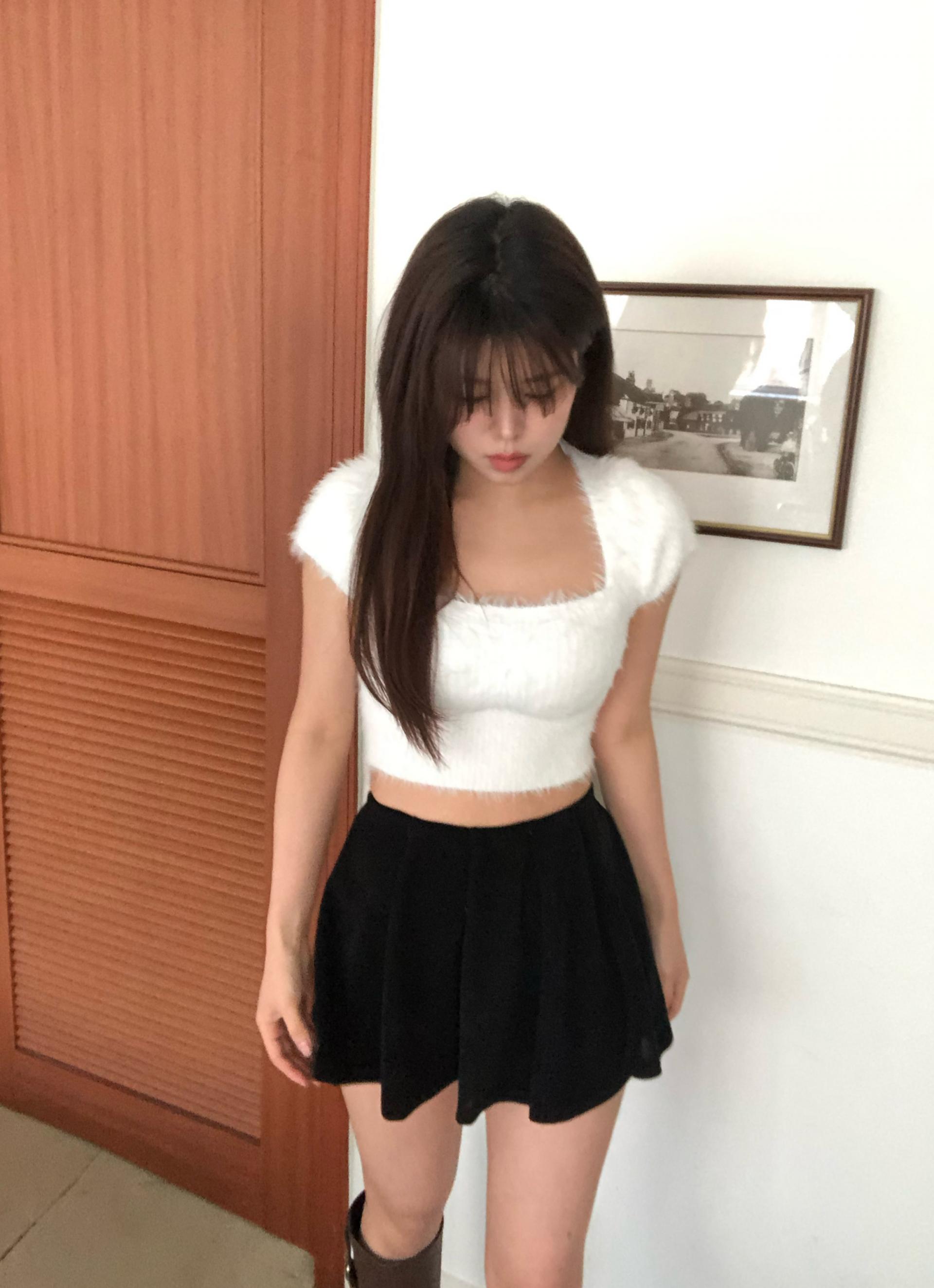 쇄골 라인을 예쁘게 살려주는 스퀘어넥으로 여리한 실루엣을 완성해주고