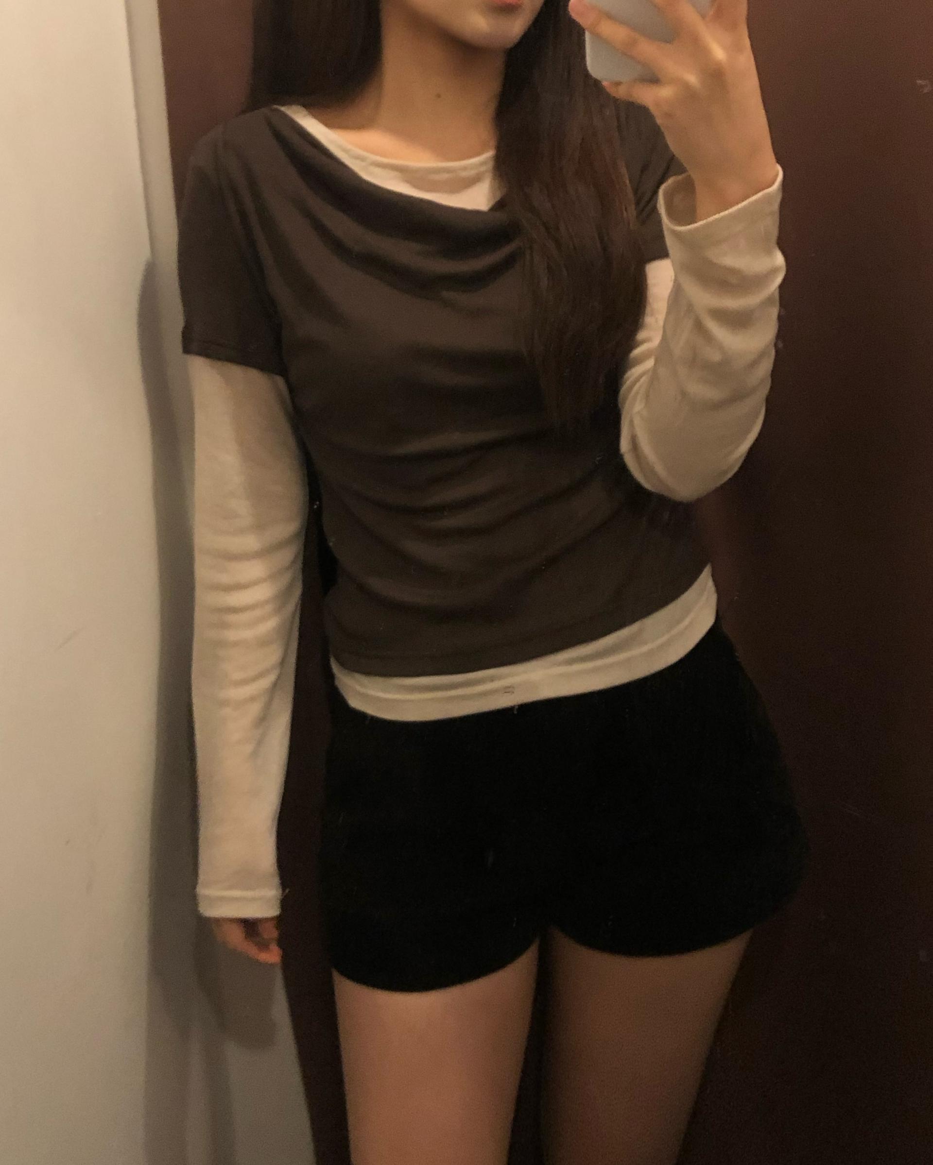 - 로우 배색 레이어드 텐셀 티 (브라운)