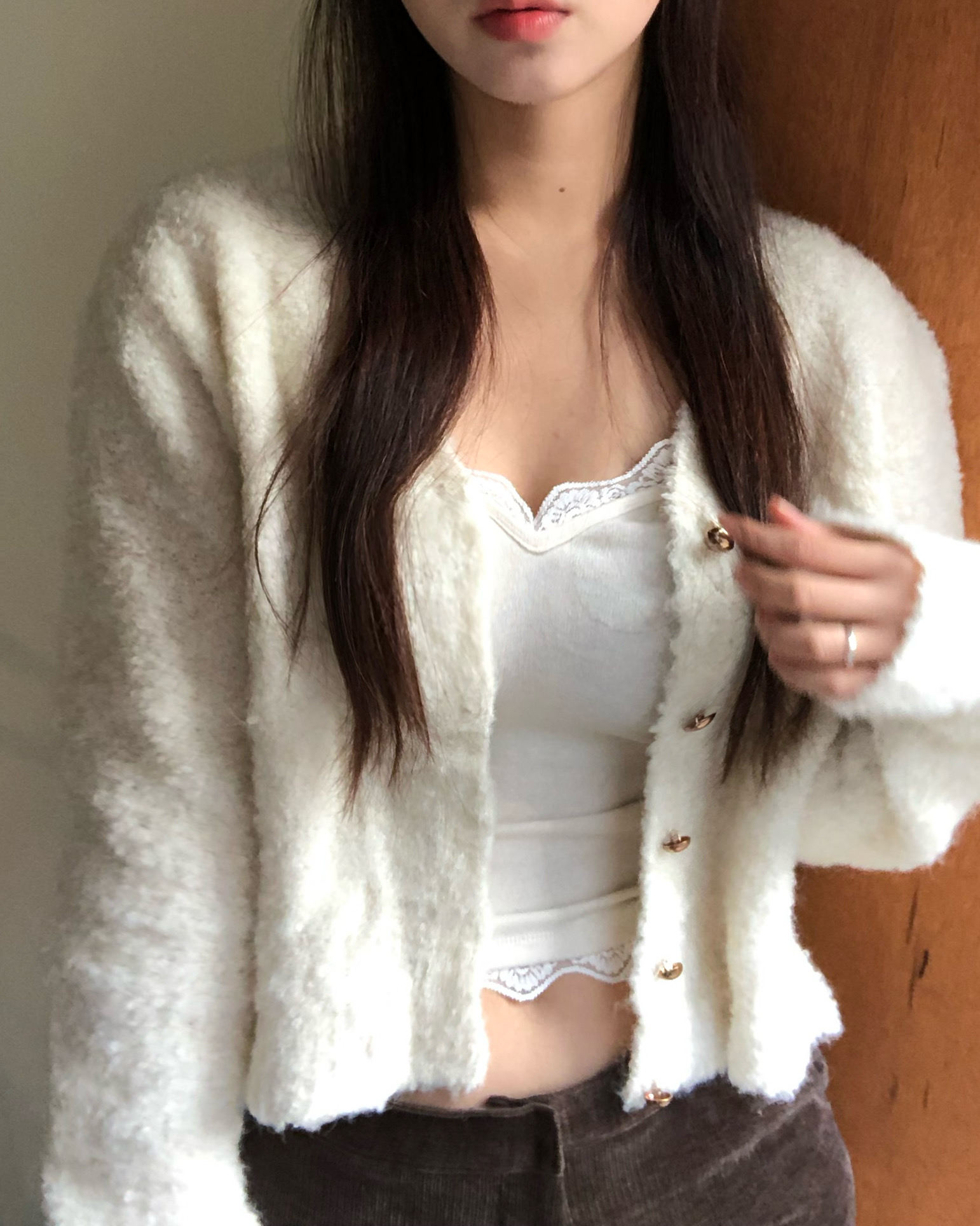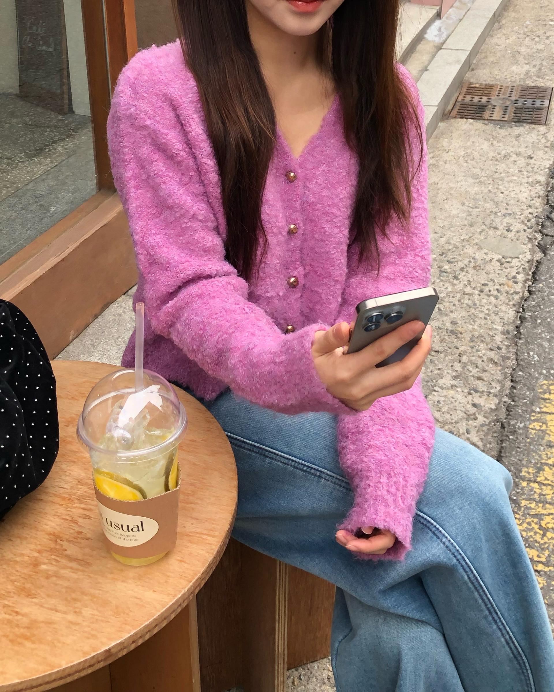 니트 가디건 타입으로 단독은 물론 아우터처럼 활용하기 좋아요