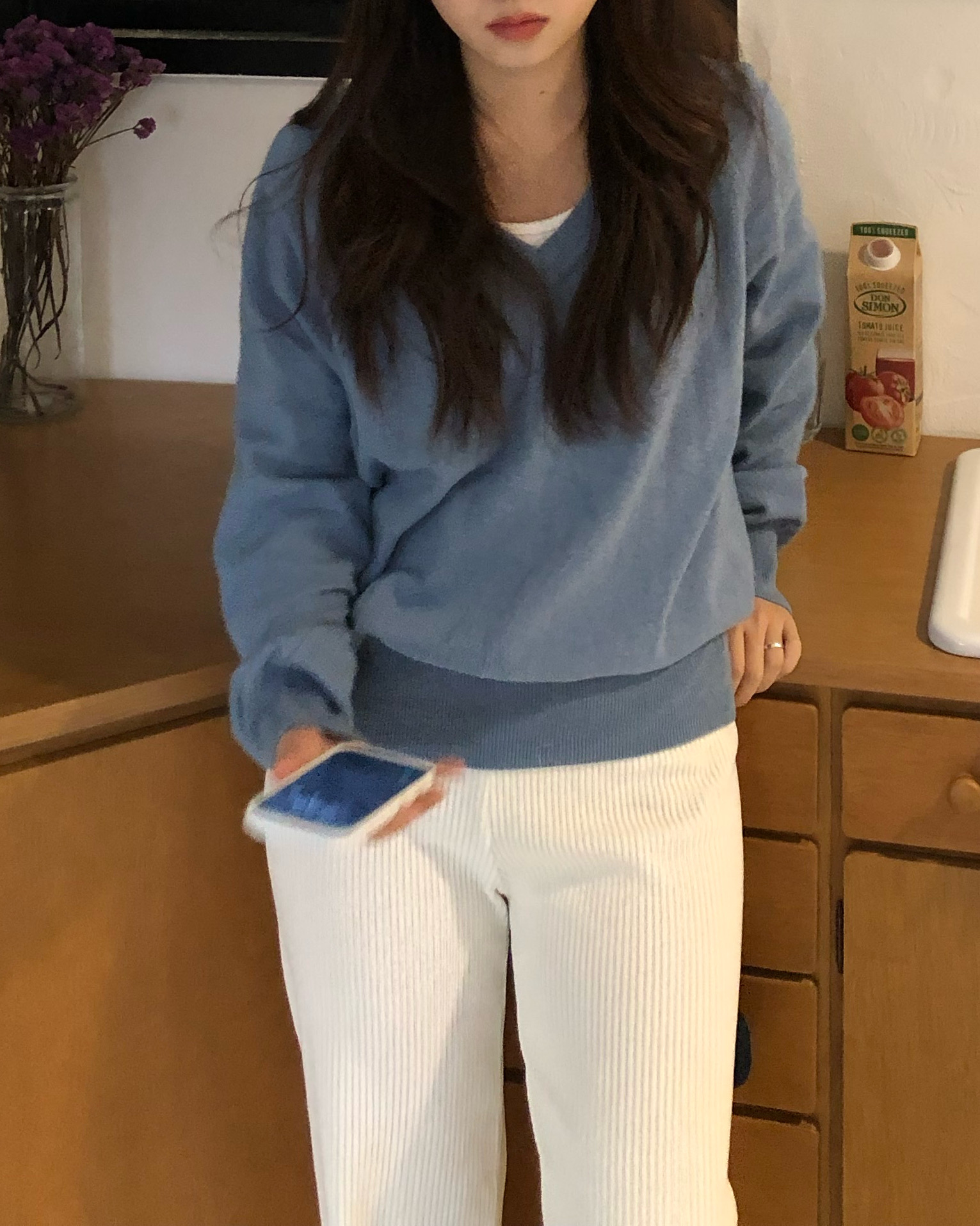 활용도 높은 브이넥 디자인으로 데일리하게 입기 좋아요