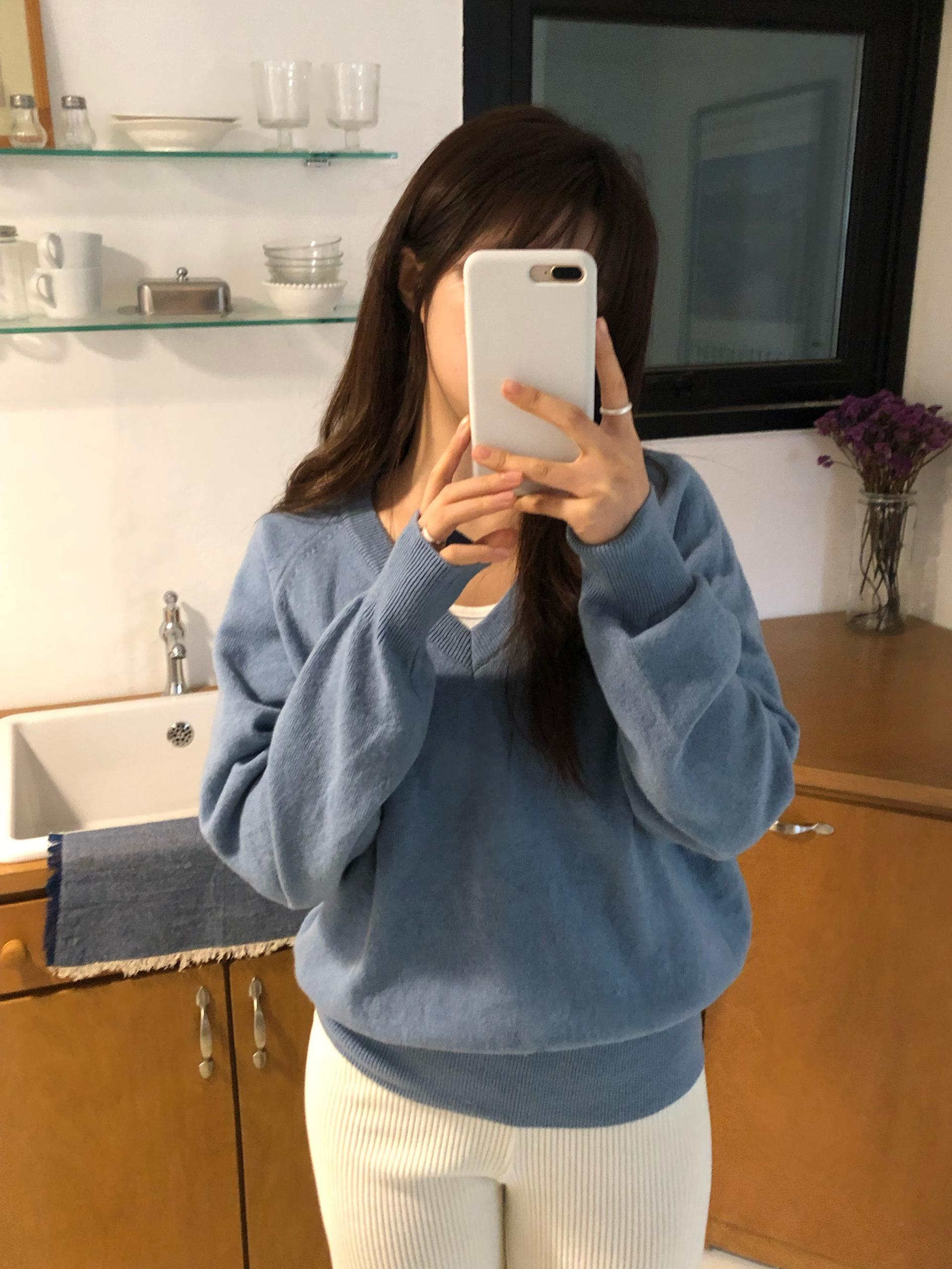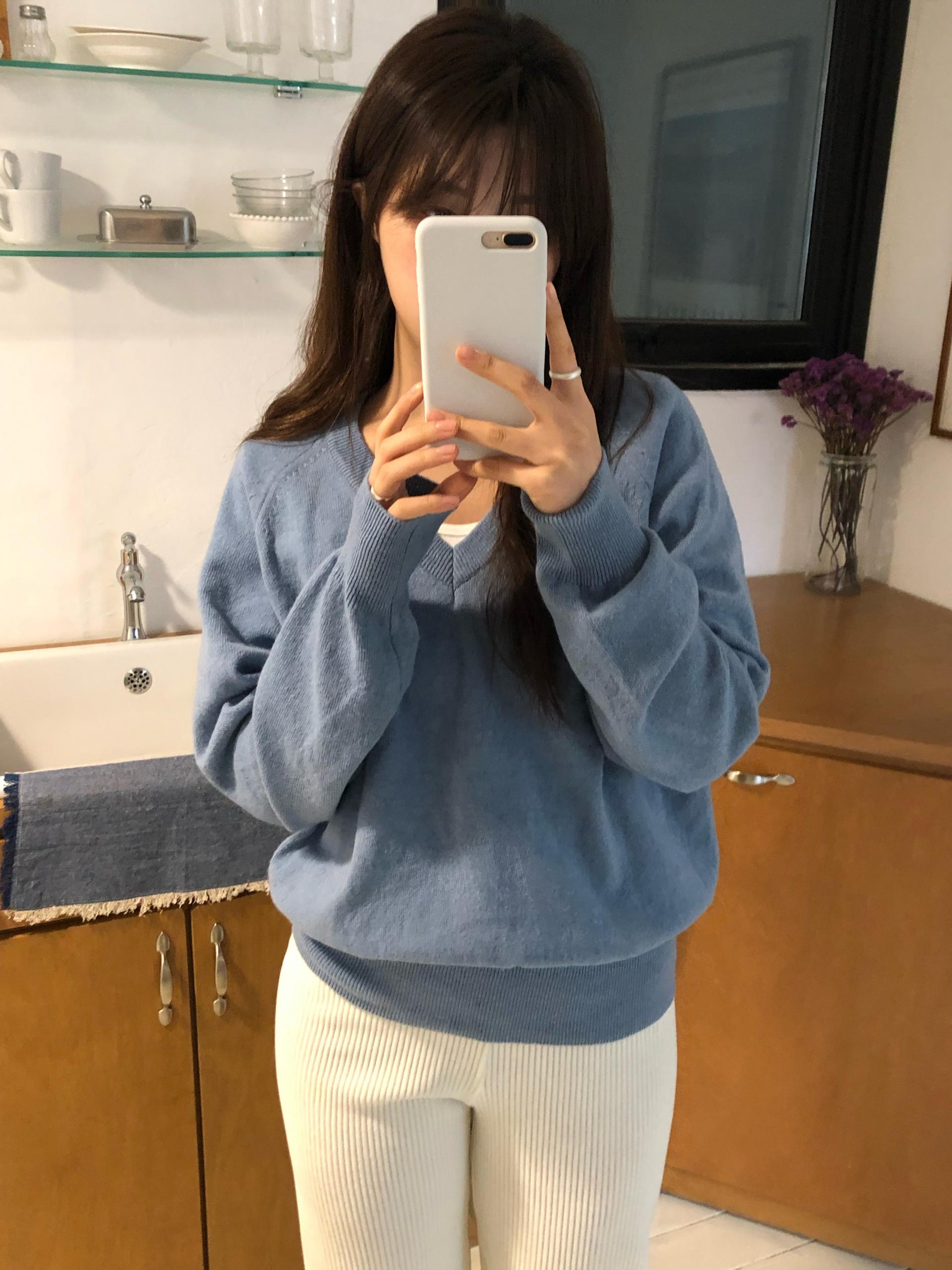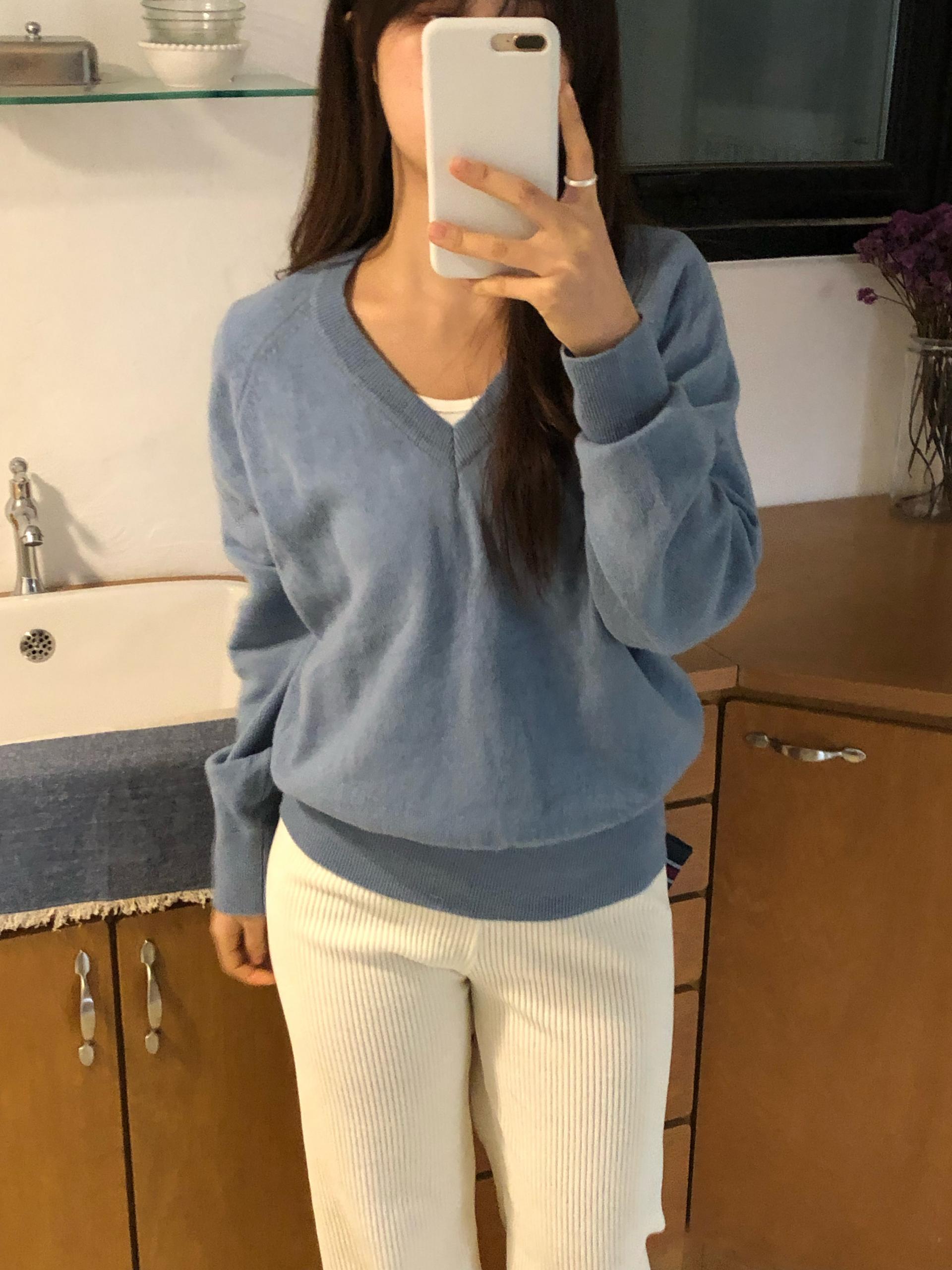 .뮤트 울 브이넥 니트는